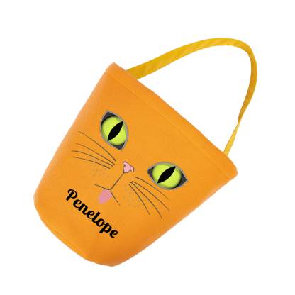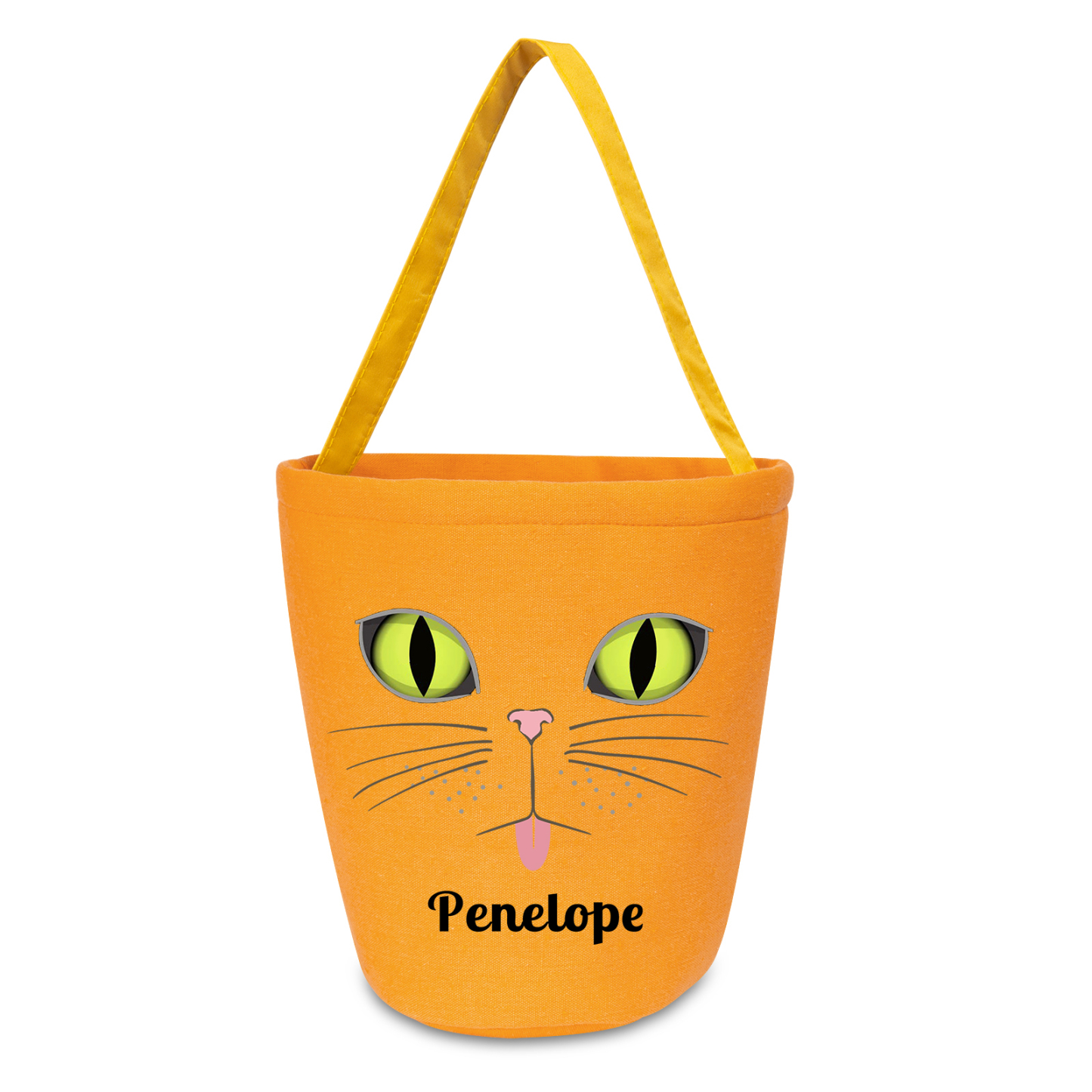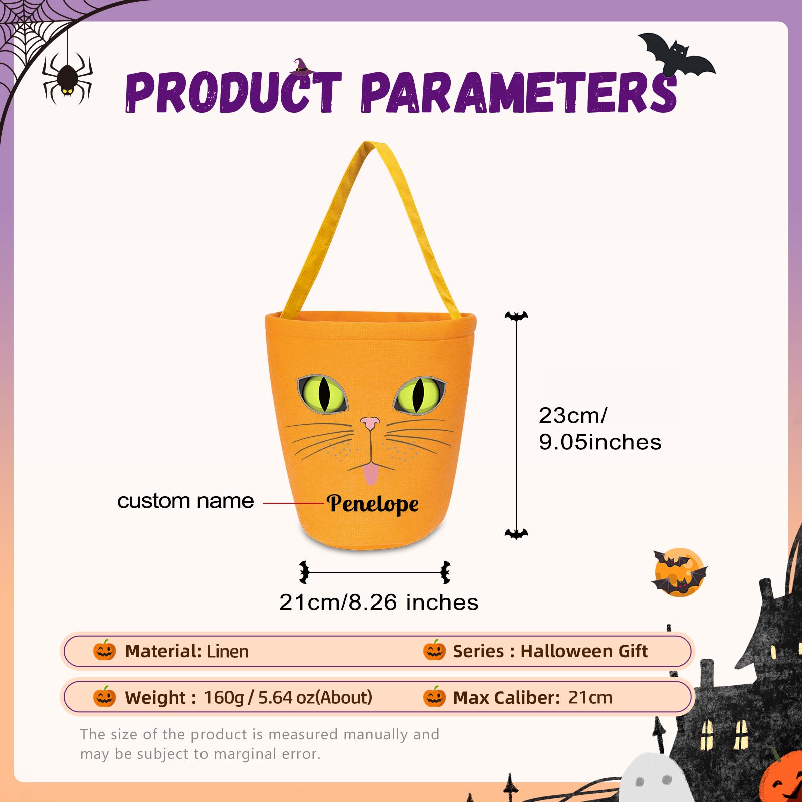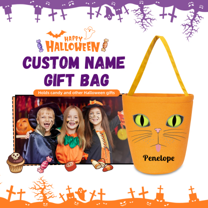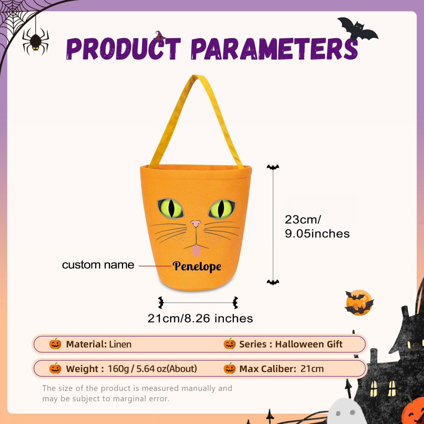 Personalized Happy Halloween Orange Cat Tote Bag, Custom 1 Name Candy Bag Halloween Gift Halloween Party
