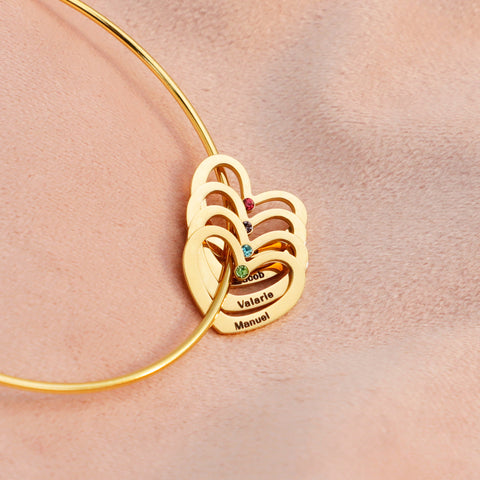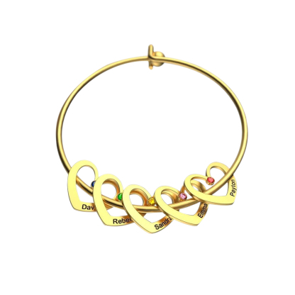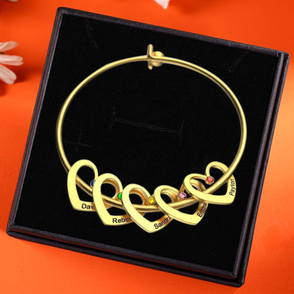Personalized Heart Bangle With 5 Names and Birthstones Bangle Bracelet Mother's Day Gifts For women