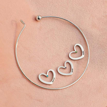 - Product Type:Customized Women's Bangle, Heart Charm Bangle With Names And Birthstones, Best Gift For Her