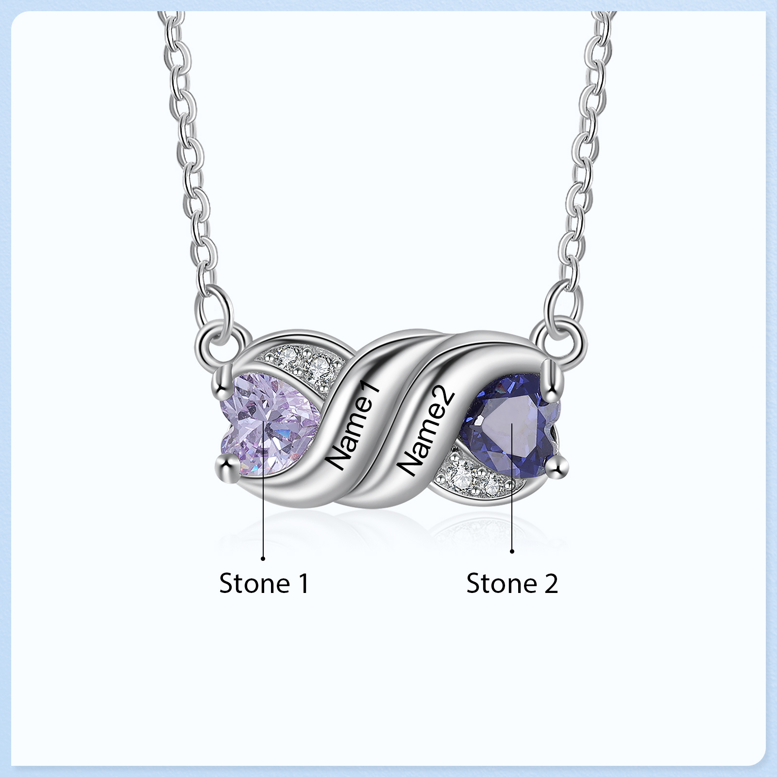 Personalized Heart Birthstone Necklace Custom 2 Names Overlap Necklace Gifts for Her