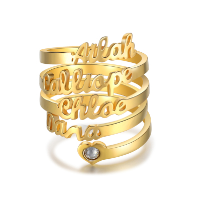 Personalized Heart Ring With Birthstone Custom 4 Names Ring Gifts For Her