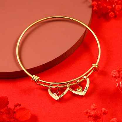 Personalized Heart Bracelet With 2 Birthstones Engraved Names Bracelet Gift For Women