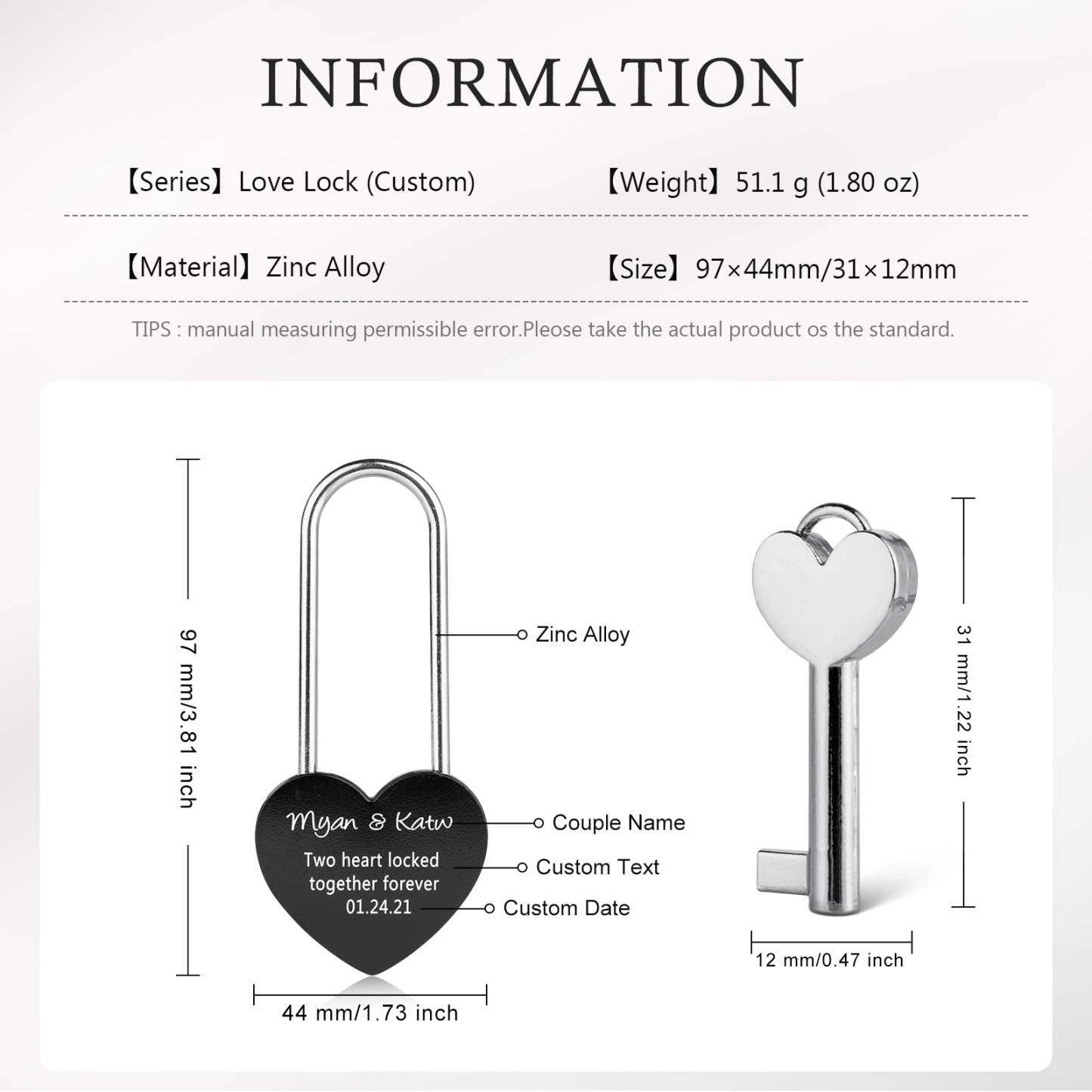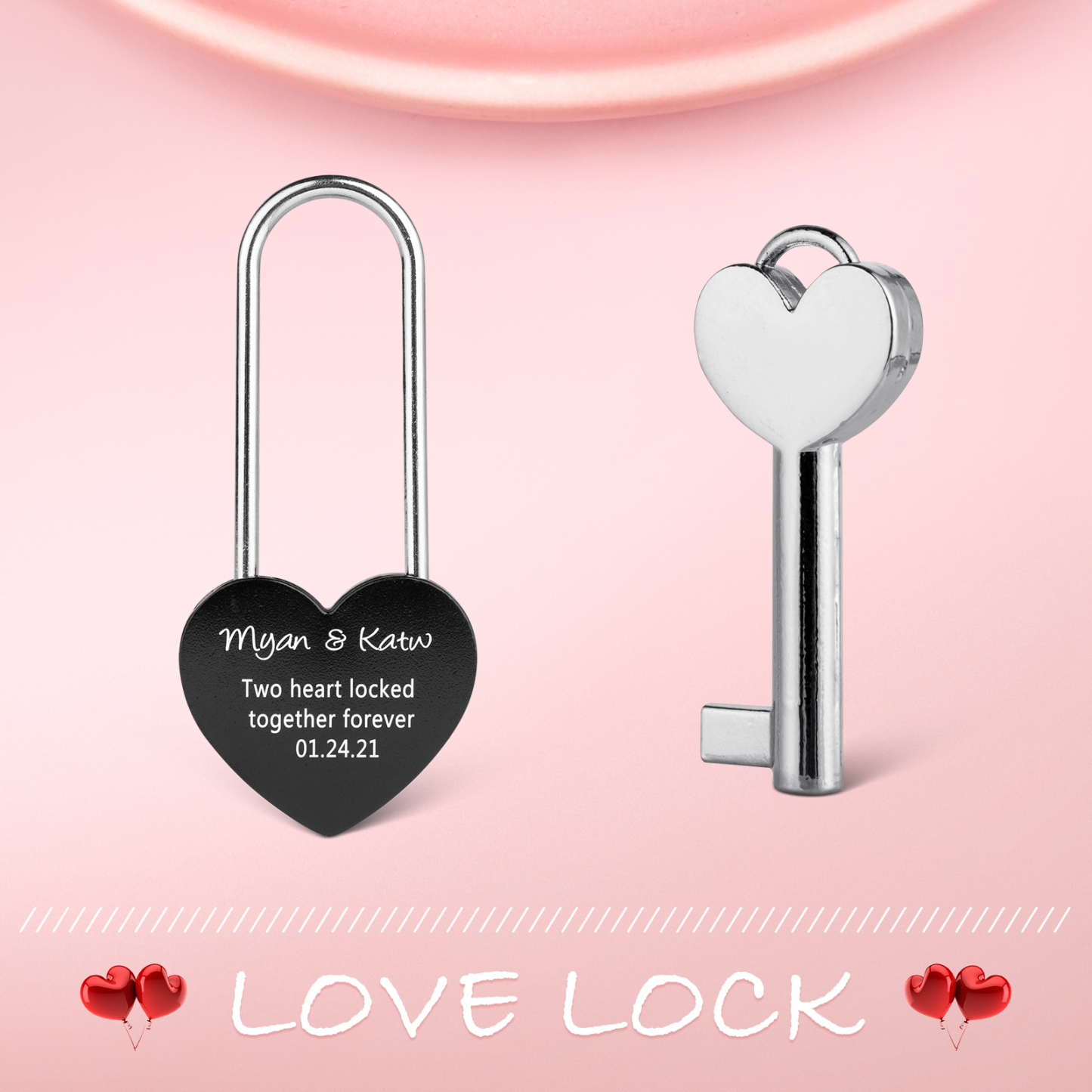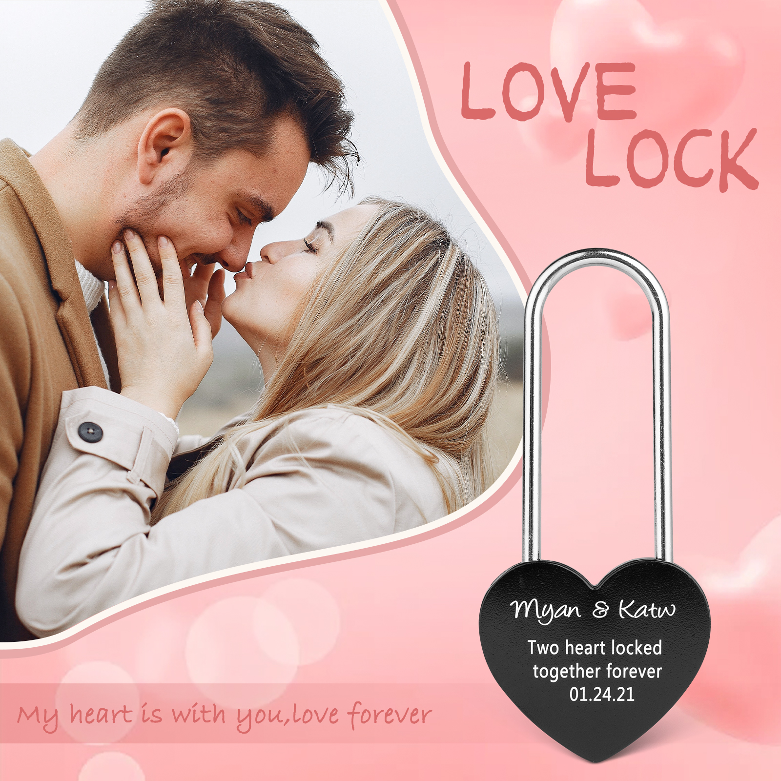 Personalized Heart Engraved Love Lock Custom Names Padlocks Gifts For Couple