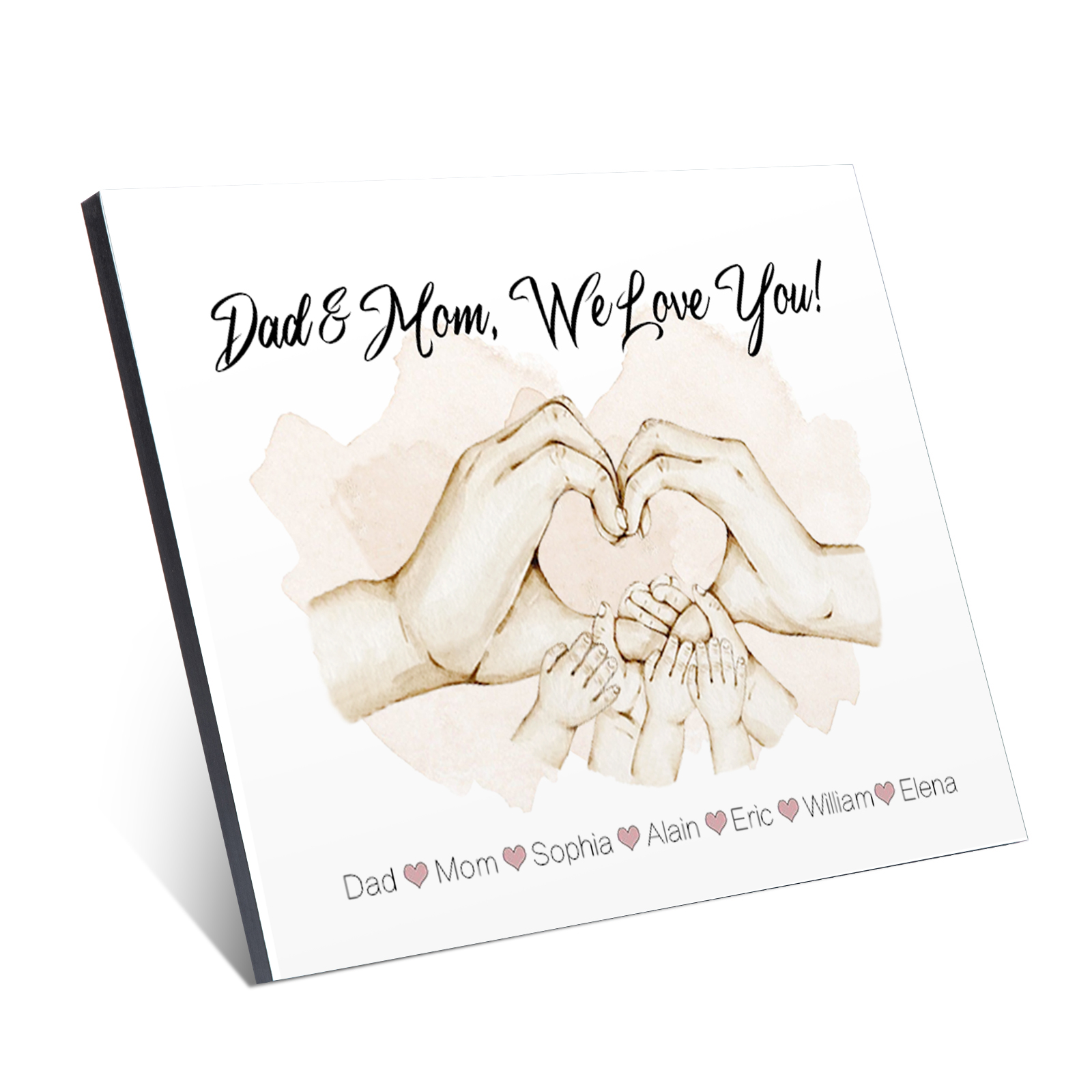 Personalized Heart Holding Hands Picture Board Custom 7 Names Family Keepsake Wood Signs Photo Frame