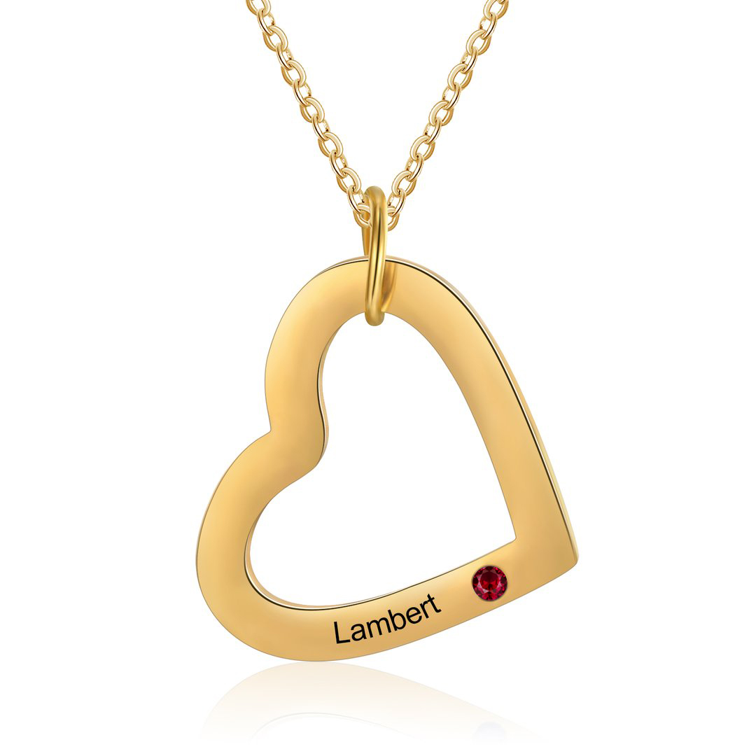 Personalized Heart Necklace With 1 Birthstones Custom Names Necklace For Her
