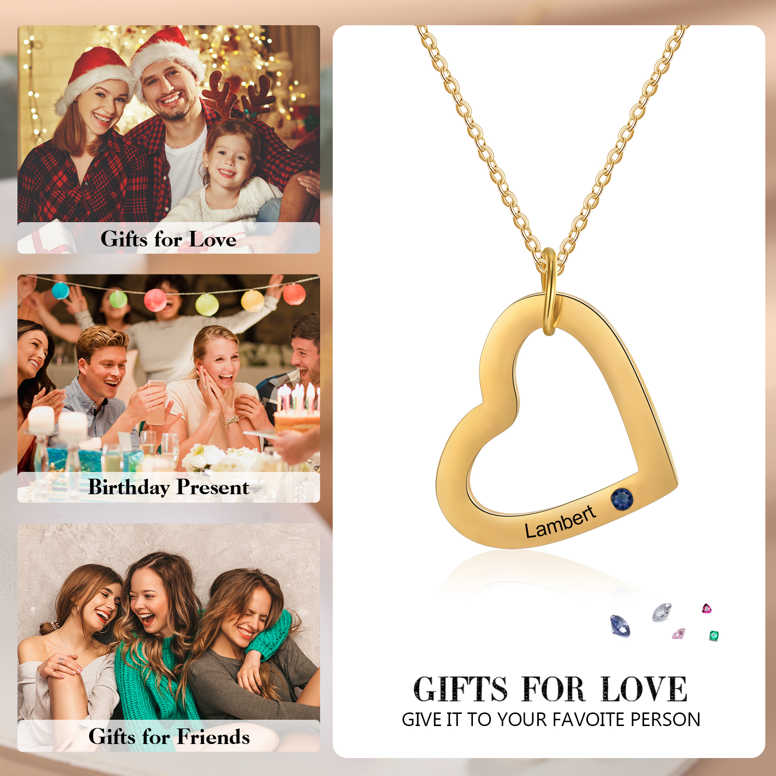 A Heart-shaped necklace with names and birthstones symbolizes your special love. This necklace will be a meaningful gift cherished by the person you love forever.🧡