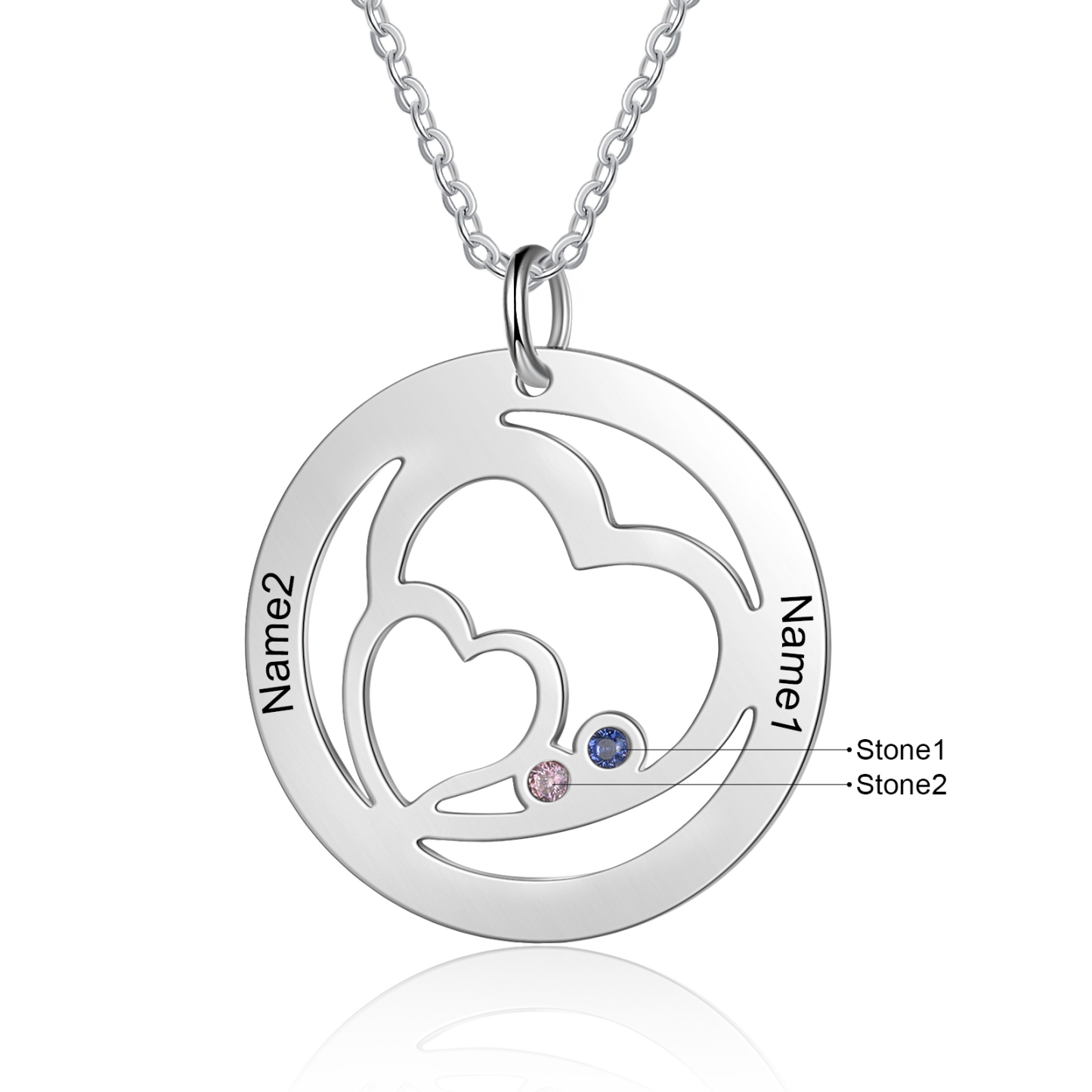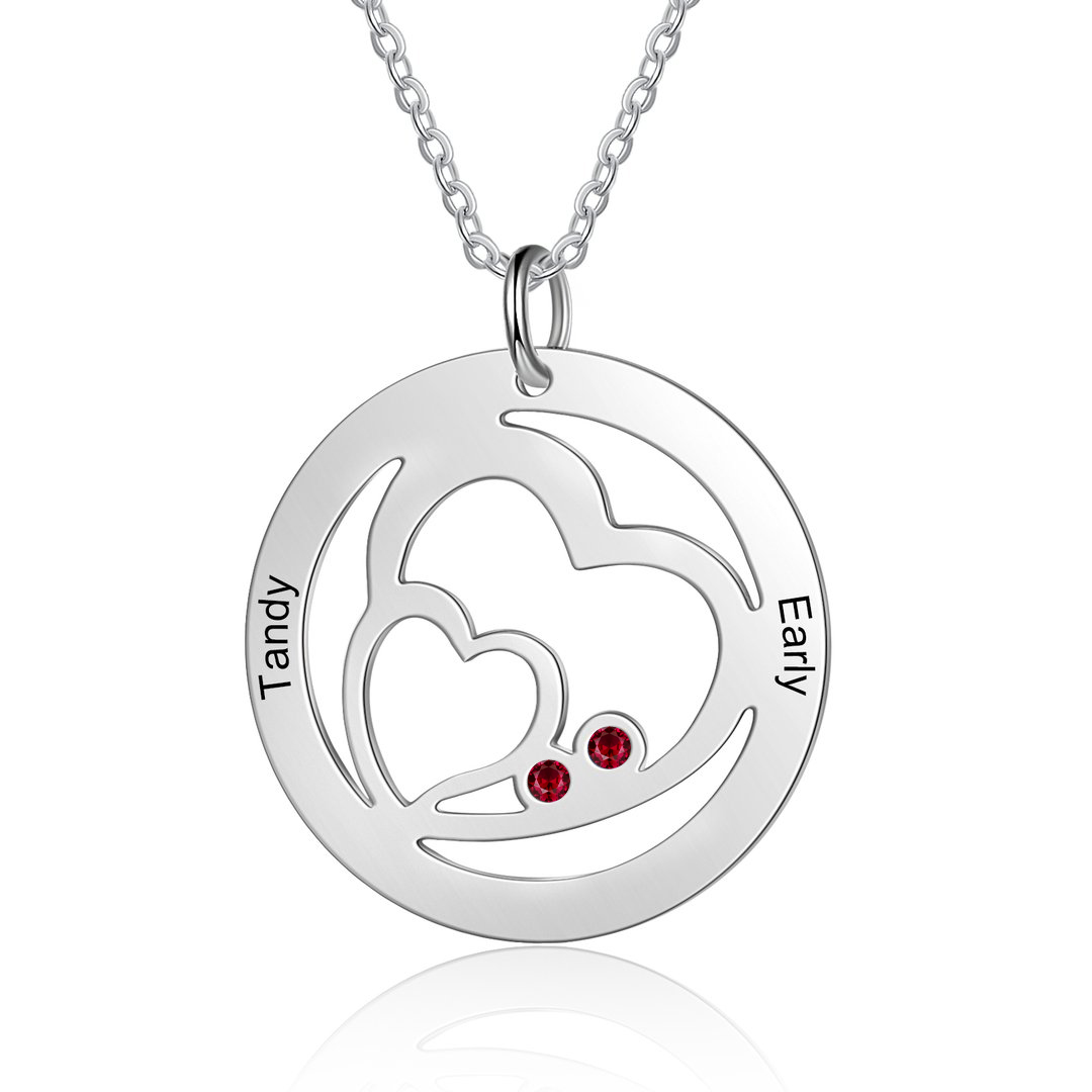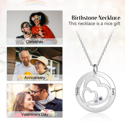 Personalized Heart Necklace With 2 Birthstones Engraved Names Necklace Gifts For Her
