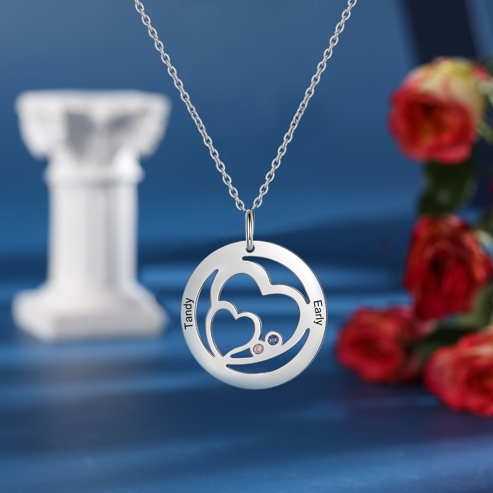 A Heart-shaped necklace with names and birthstones symbolizes your special love. This necklace will be a meaningful gift cherished by the person you love forever.🧡
