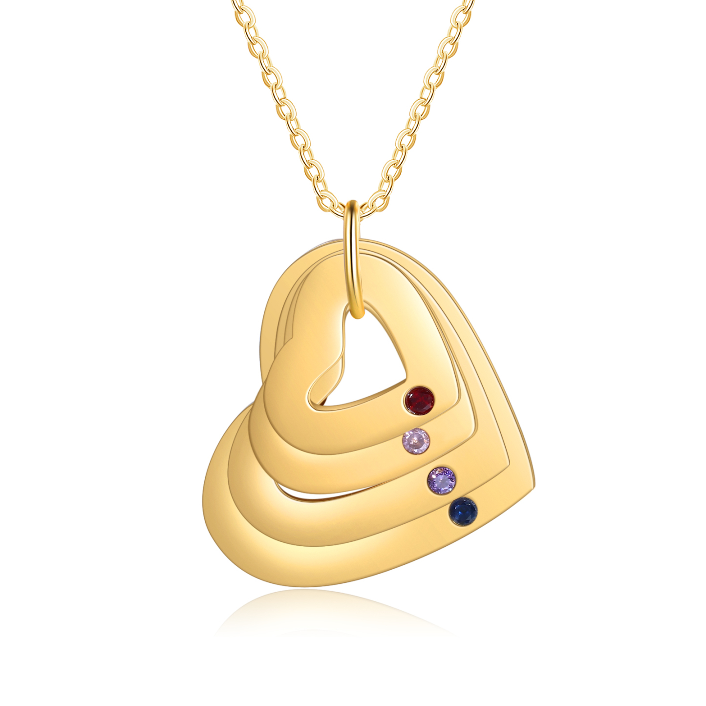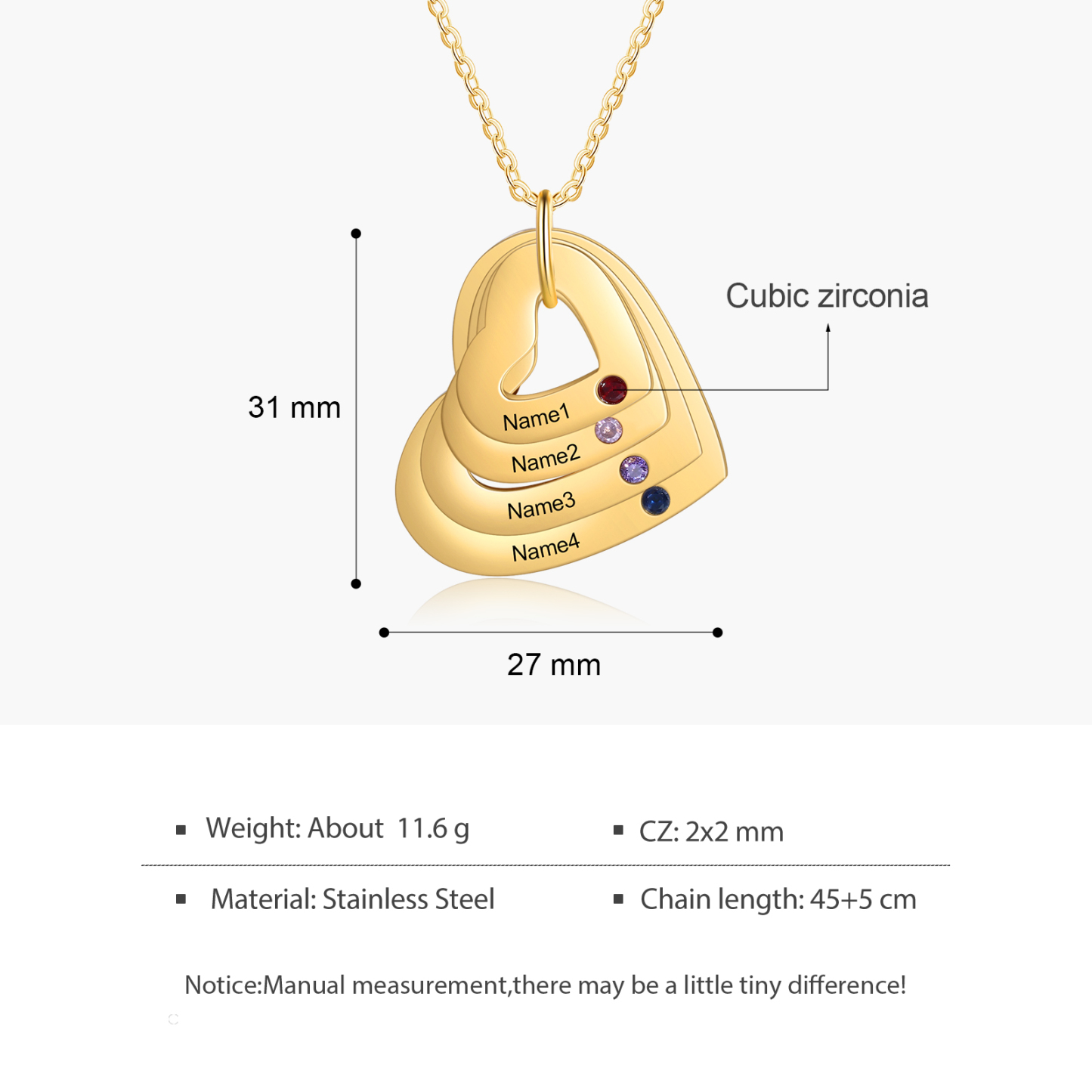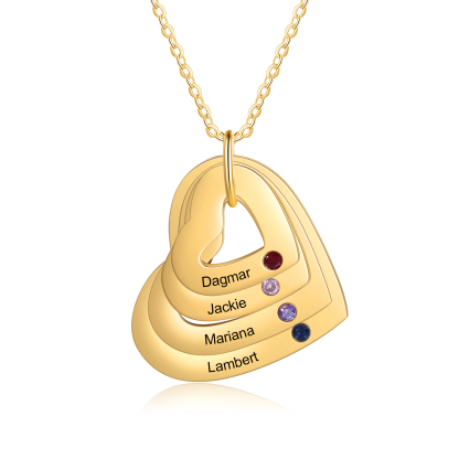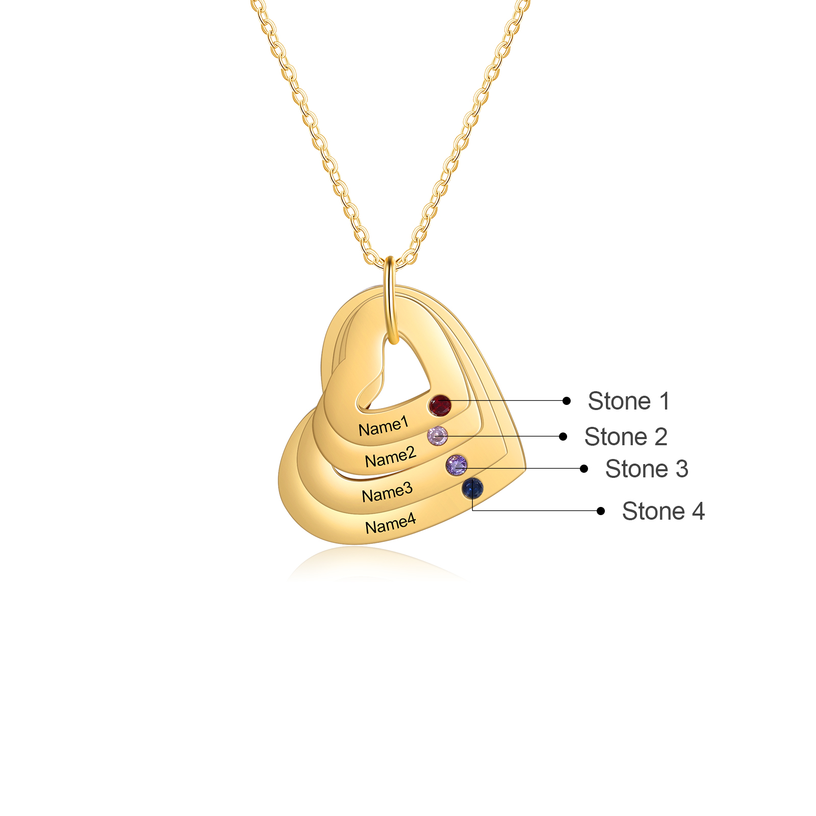 Personalized Heart Necklace With 4 Birthstones Custom Names Necklace For Her