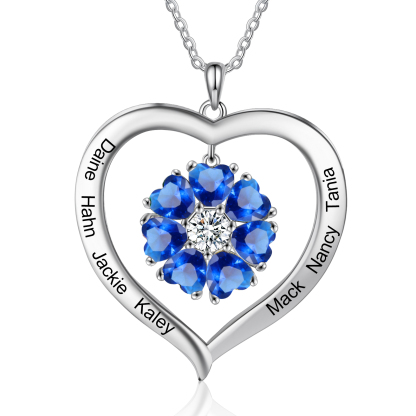 September Birthday Gift Personalized Heart Necklace with 7 Birthstones Engraved Names Family Necklace Gifts for Her
