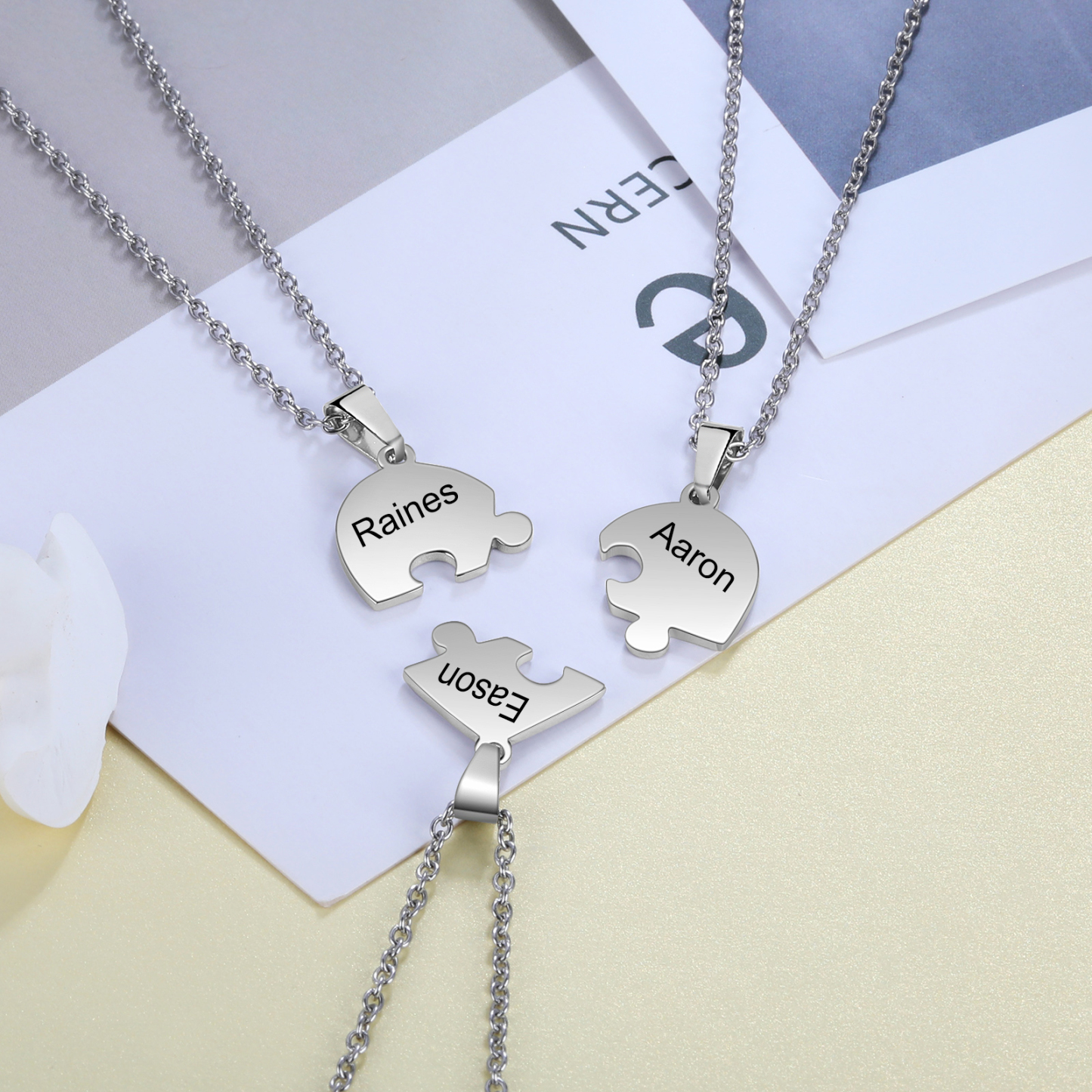 Personalized Heart Puzzle Necklace With 3 Names Gifts For Her
