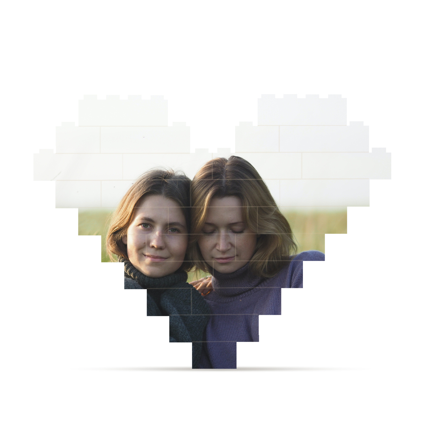 Custom Heart Shape Building Blocks Puzzle Photo Brick Square Shape Puzzle DIY Gift - Double Layers