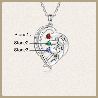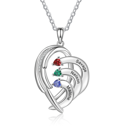 Personalized Heart Wings Necklace With 3 Birthstones Custom Names Necklace Gift For Her