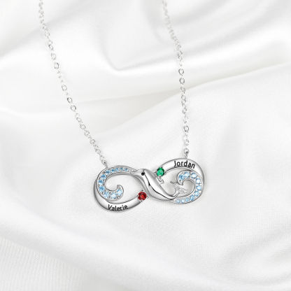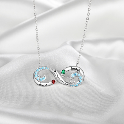 Personalized Infinite Dolphin Necklace With 2 Birthstones Custom Names Best Gift For Her