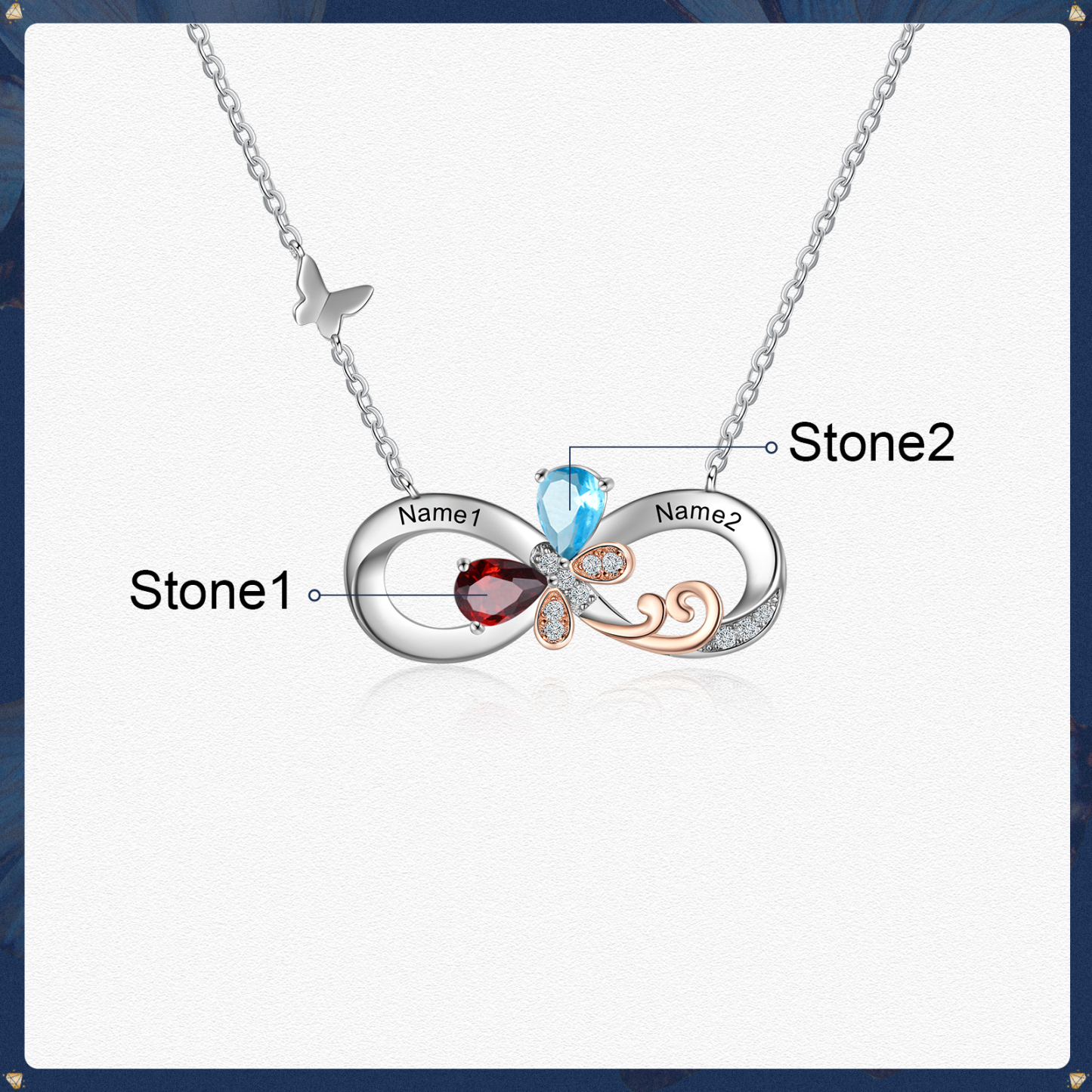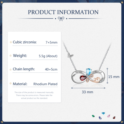 Personalized Infinity Butterfly Necklace With 2 Birthstones Engraved Names Gift For Women