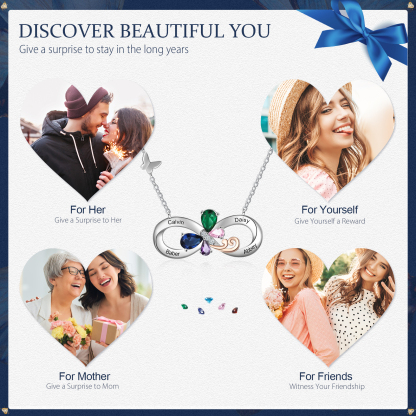 Personalized Infinity Butterfly Necklace With 4 Birthstones Engraved Names Gift For Women