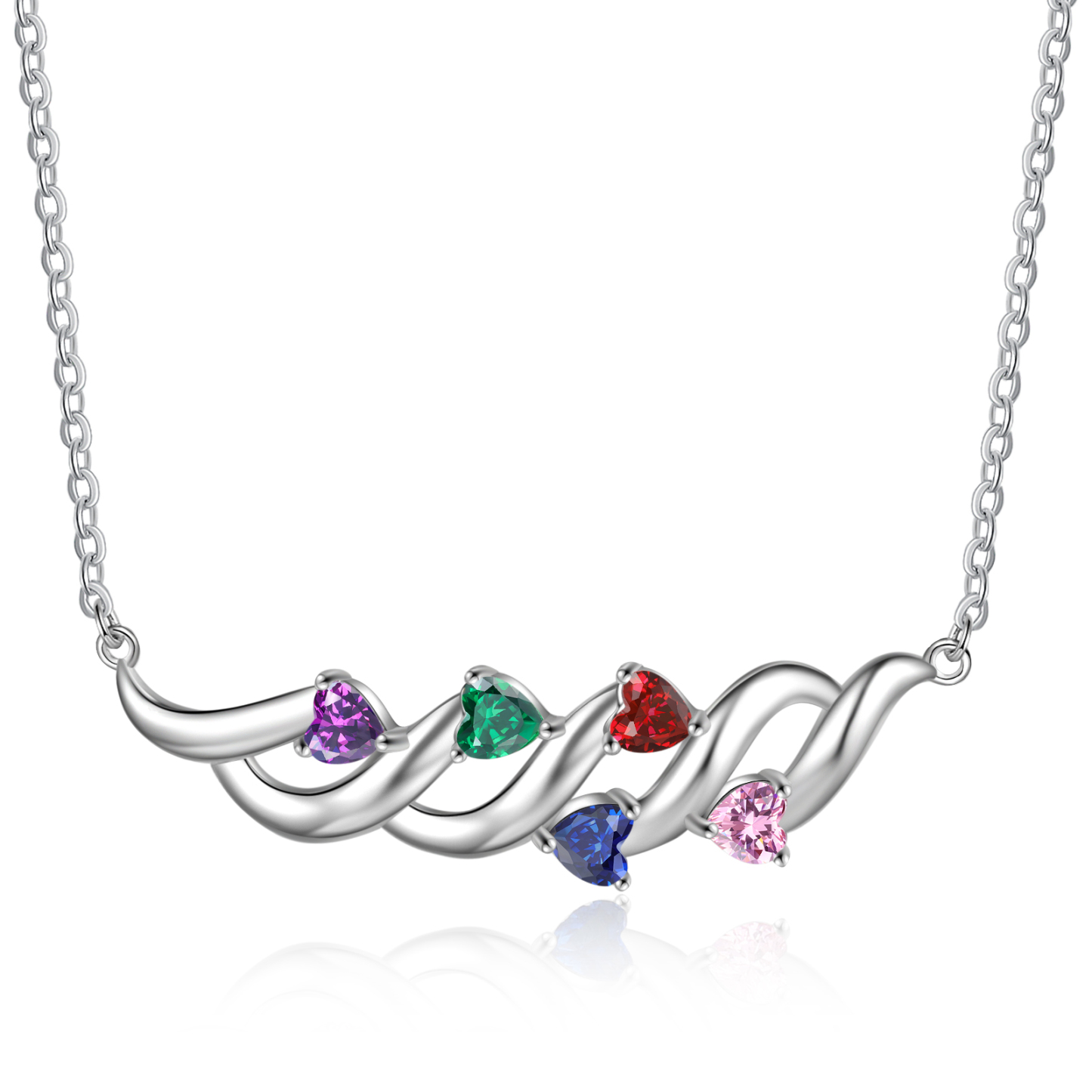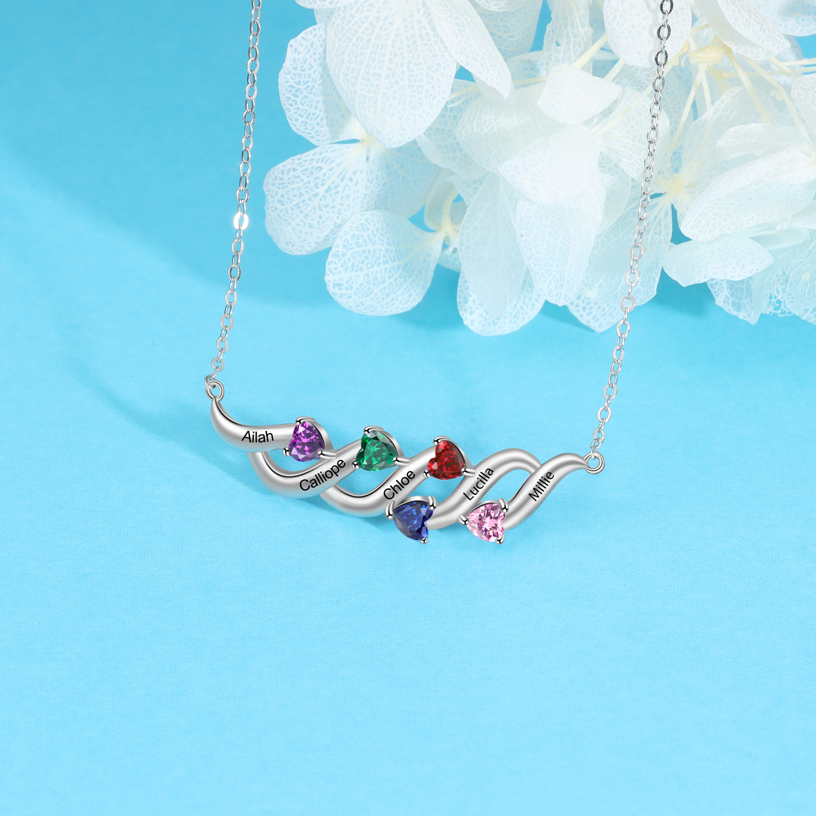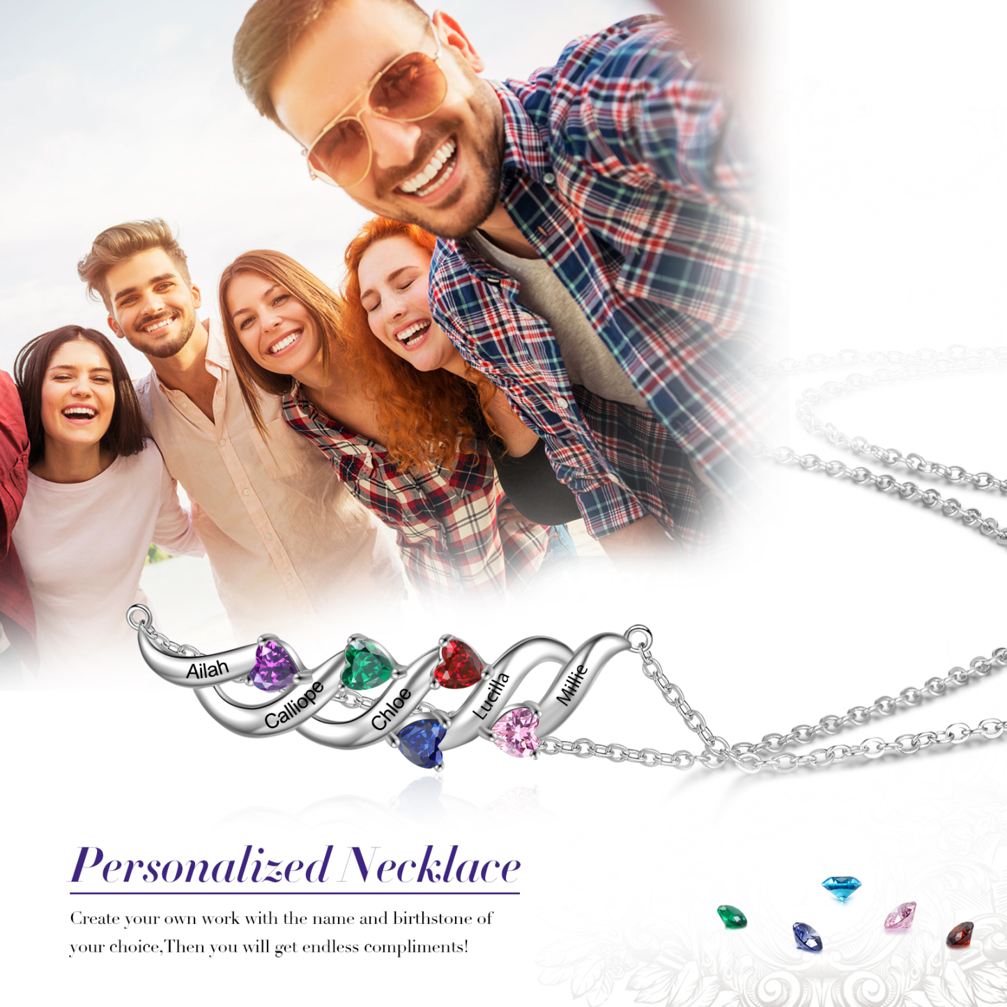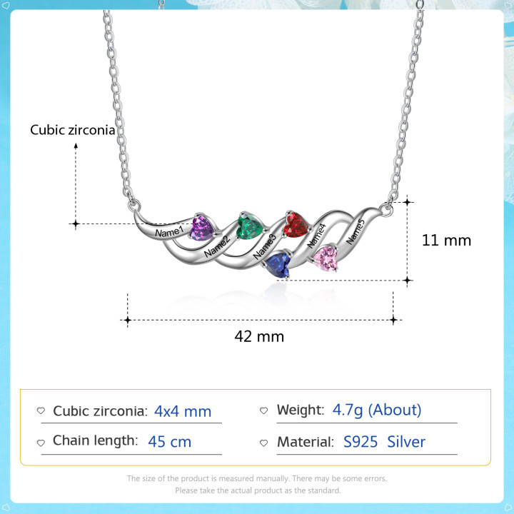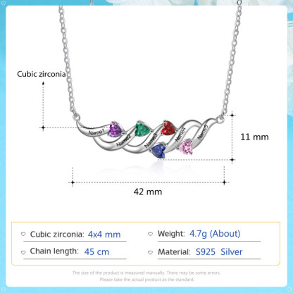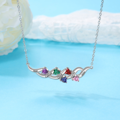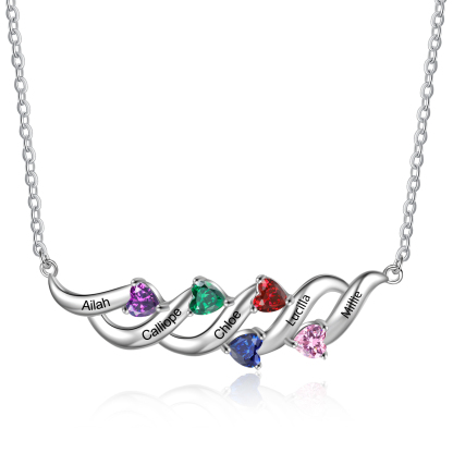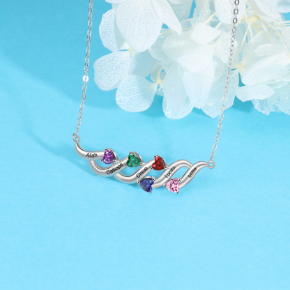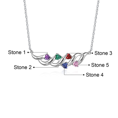 Personalized Necklace With 5 Birthstones Engraved Names Gift For Her