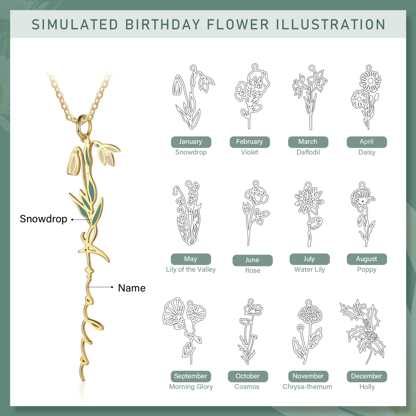 Personalized January Birth Flower Necklace Custom 1 Name Epoxy Necklace Gifts For Her