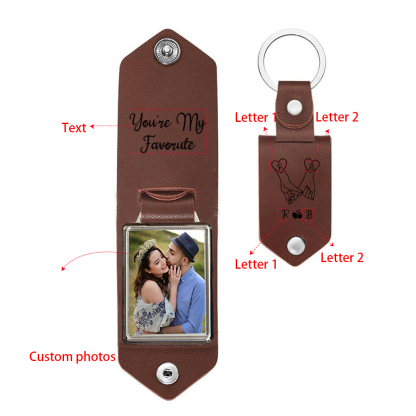 Personalized Letter Flip Leather Keychain Custom Photo Keychain Gifts For Him