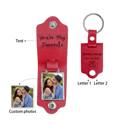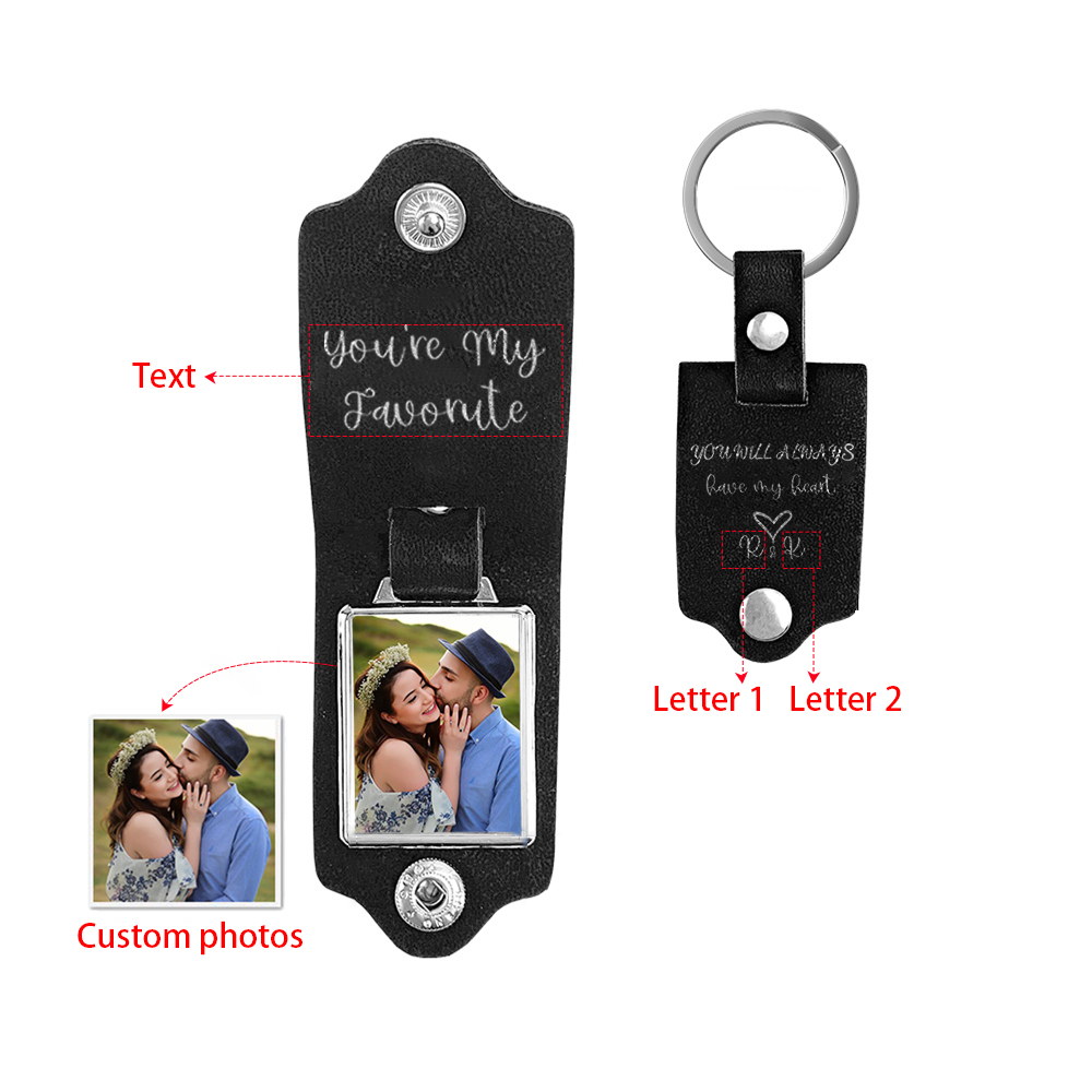 Personalized Letter Flip Leather Keychain Custom Photo Keychain Gifts For Him
