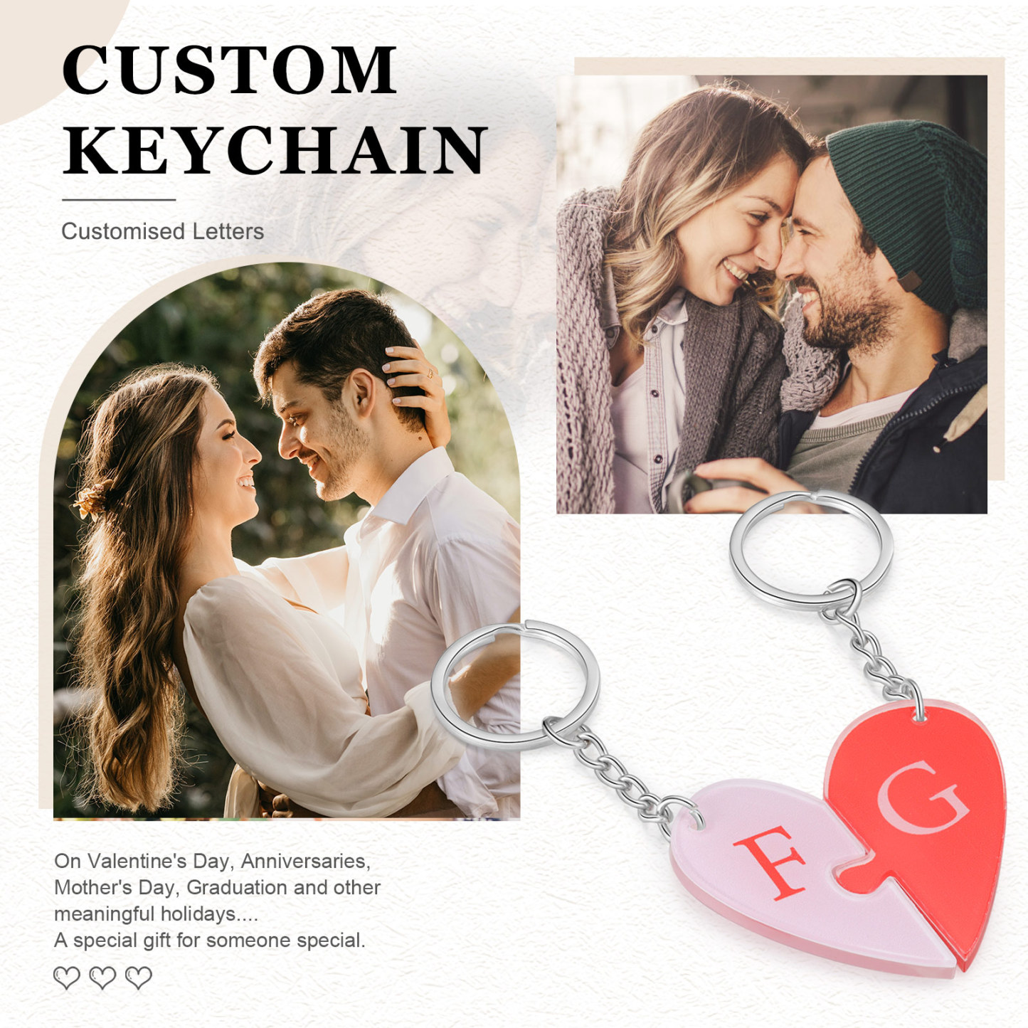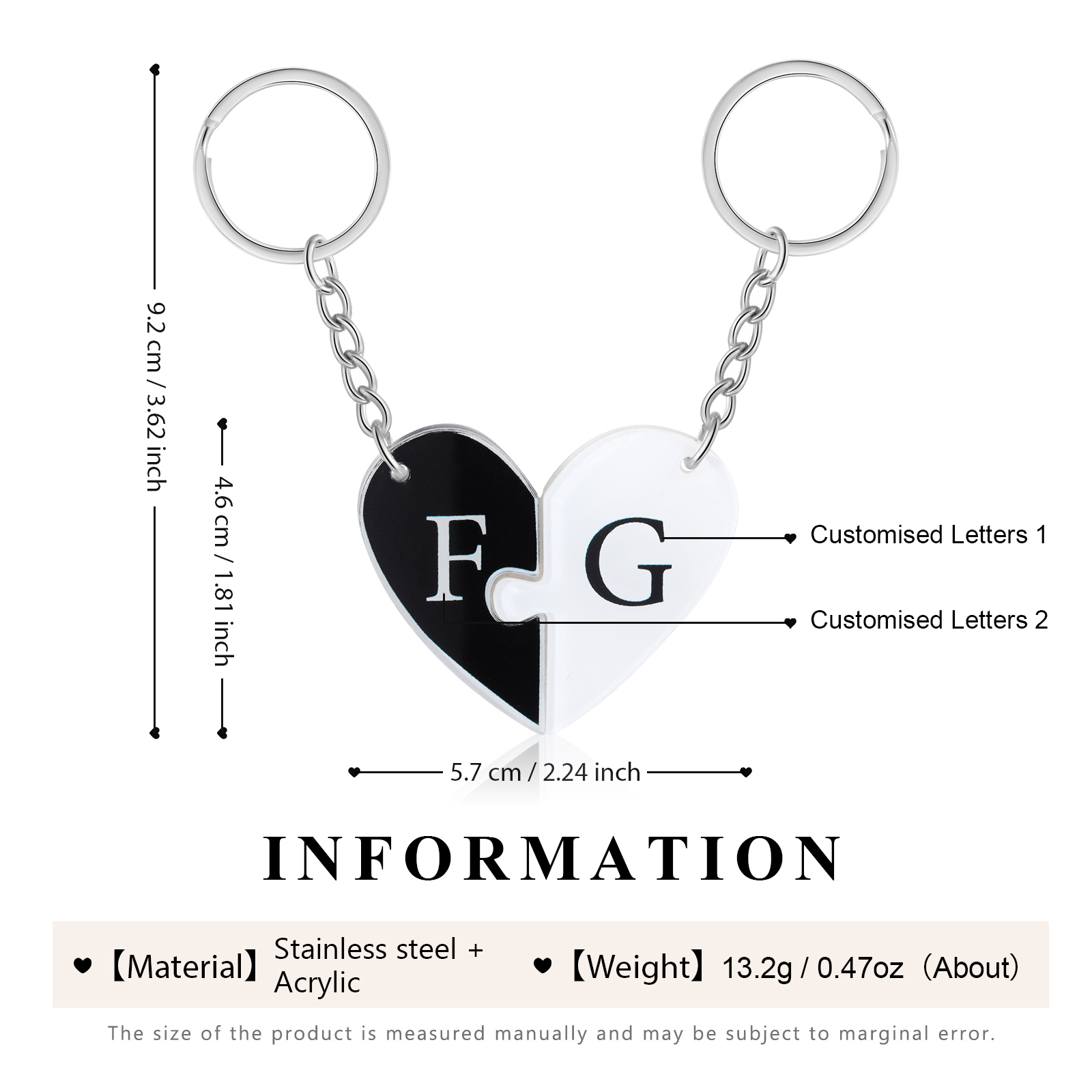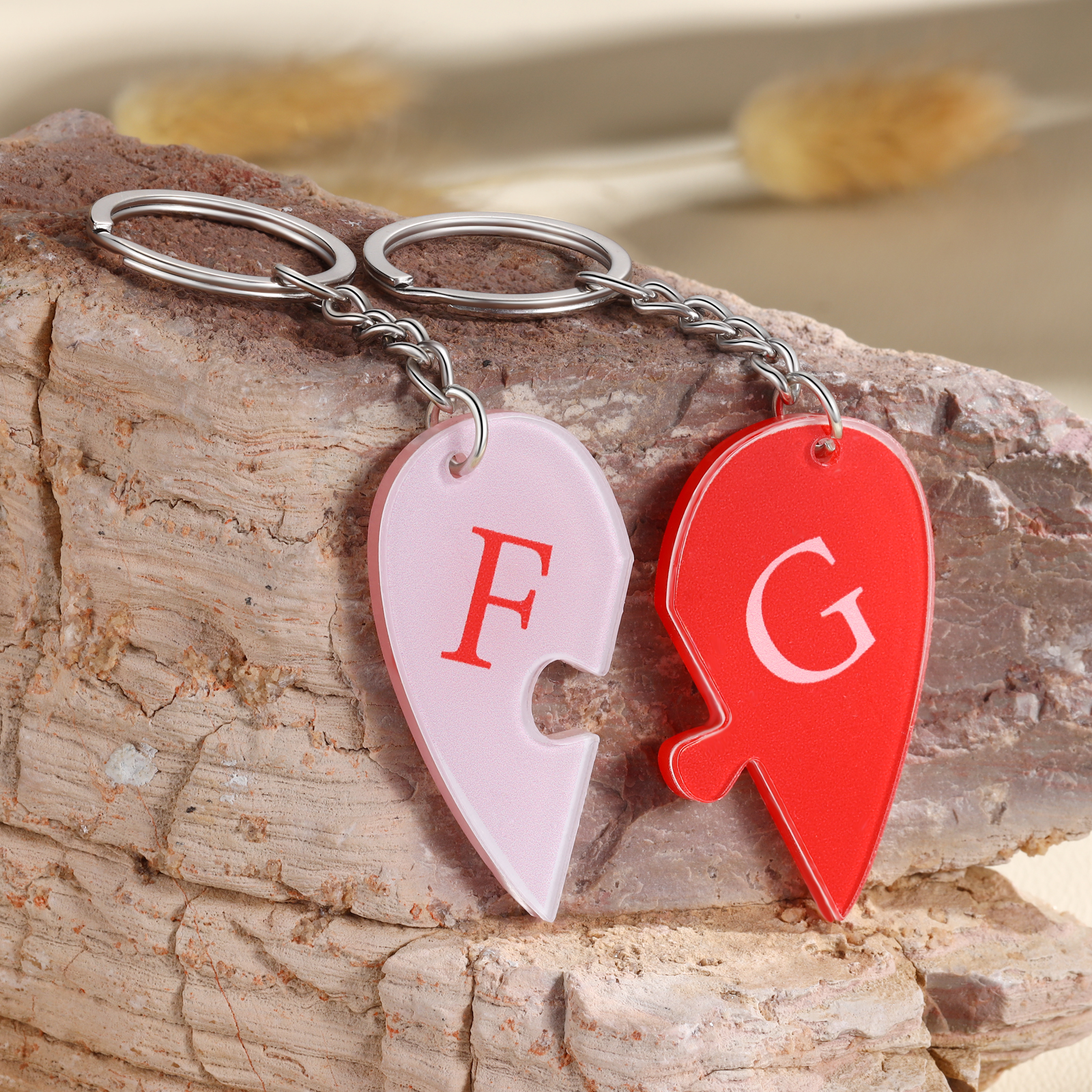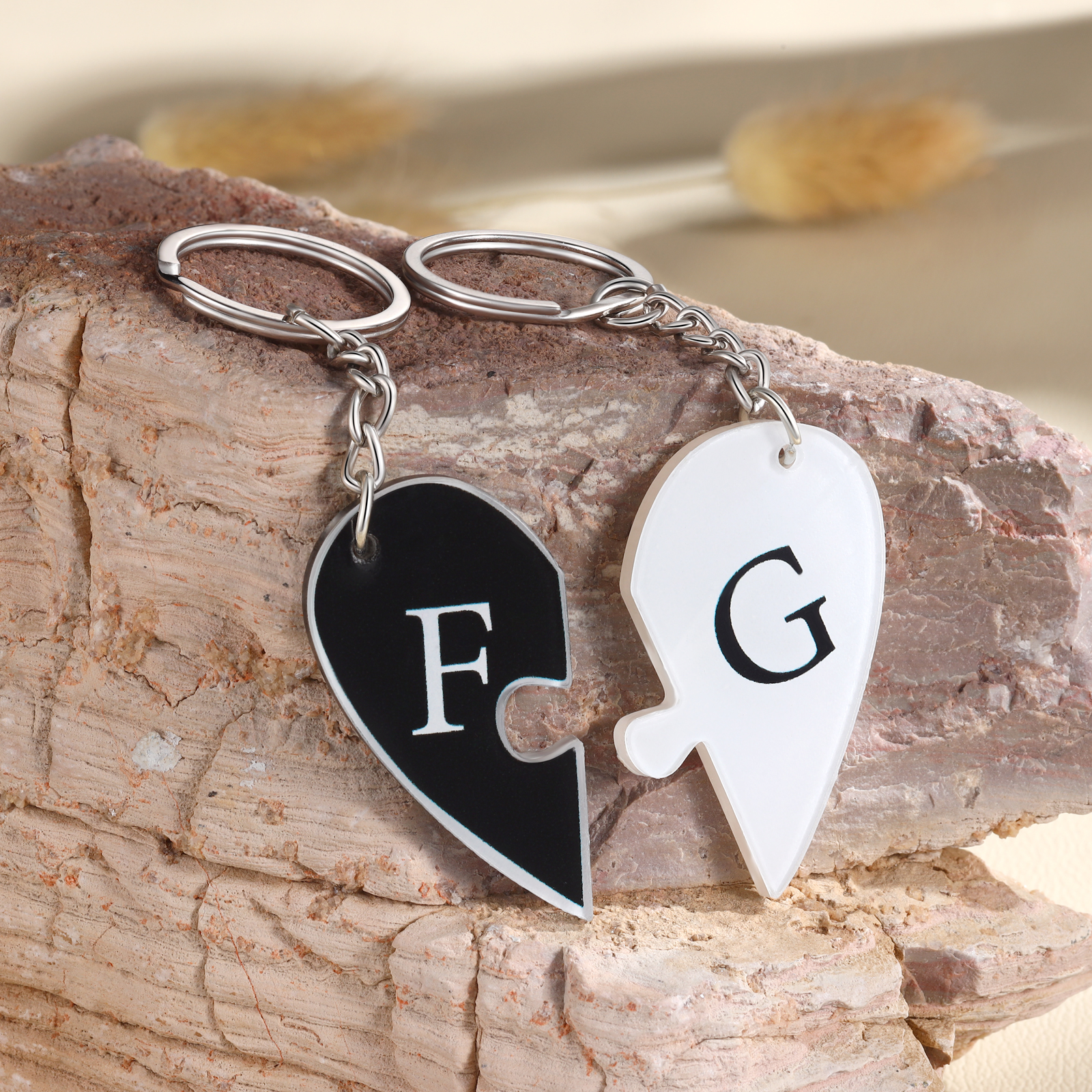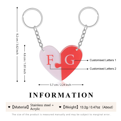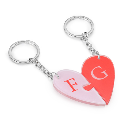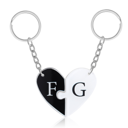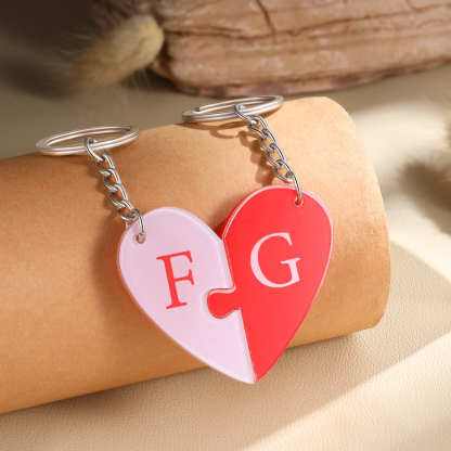 Personalized Letter Heart Acrylic Puzzle Couple Keychain Engrave Matching Couple Gifts, Special Gift