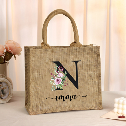 Personalized Letter & Name Tote Bag Beach Jute Bag Birthday Wedding Party Travel Gift for Women/Girls