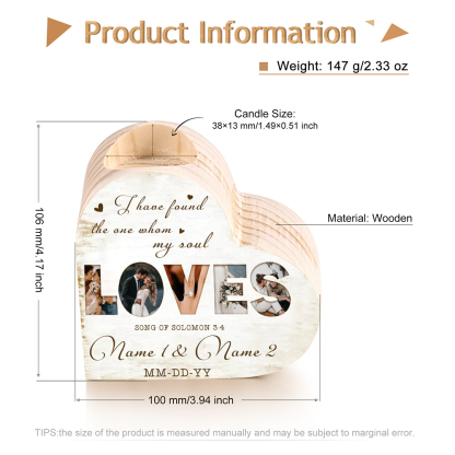 Personalized Love Couple Heart Candle Holder Engrave Photo Wooden Candlesticks Valentines Gift