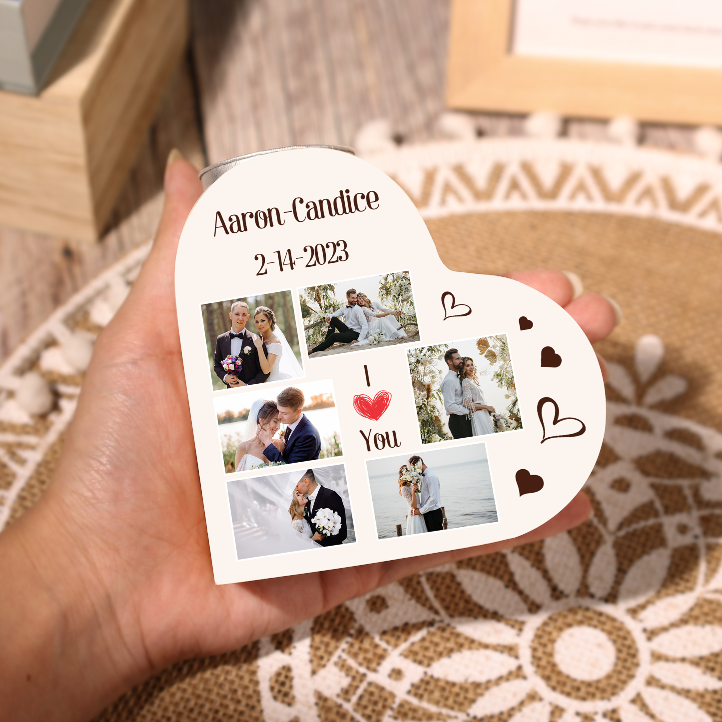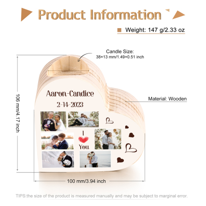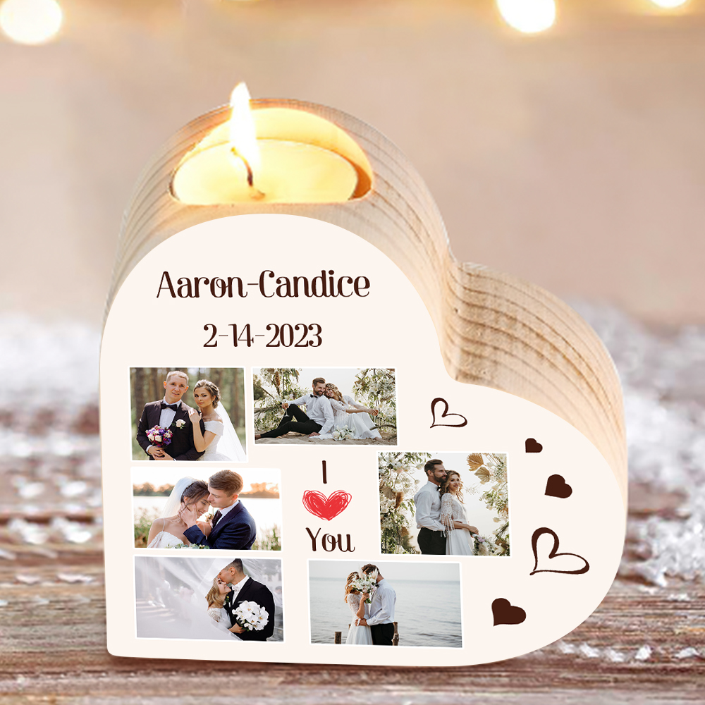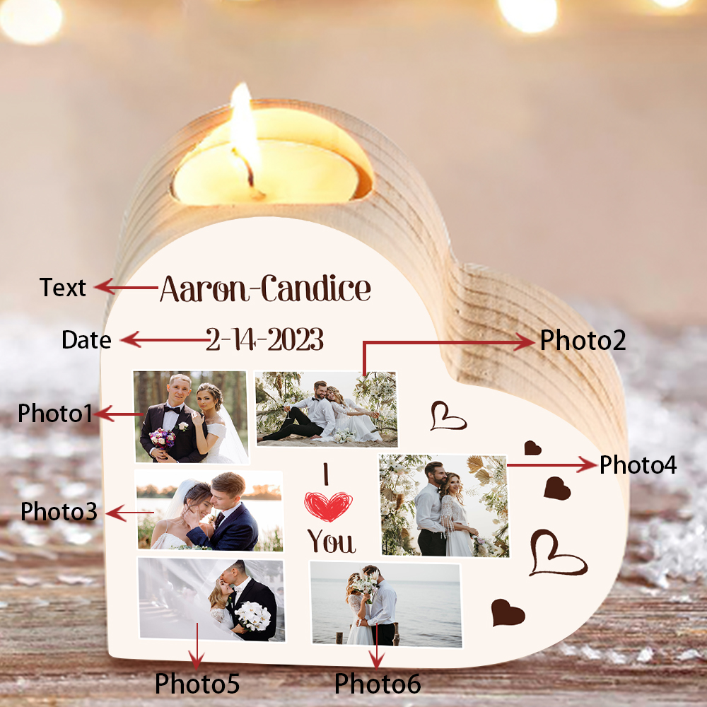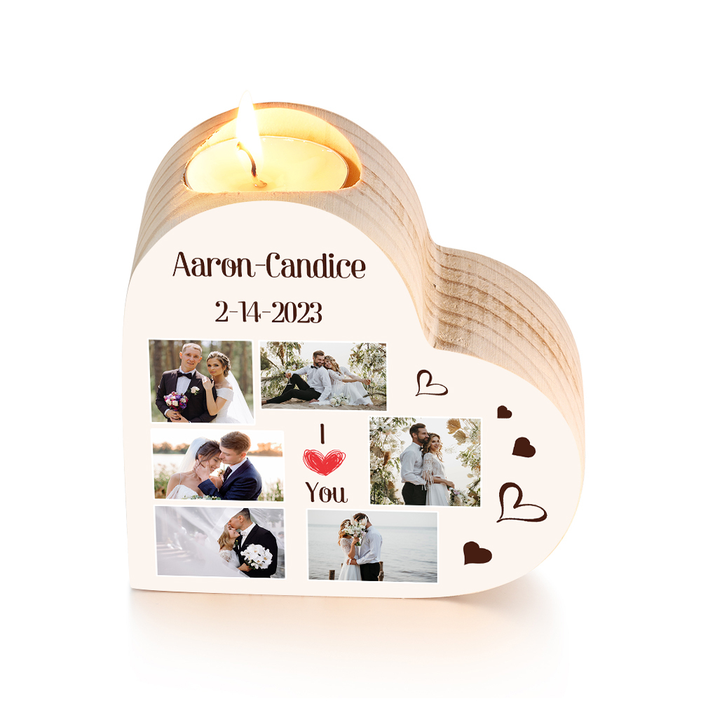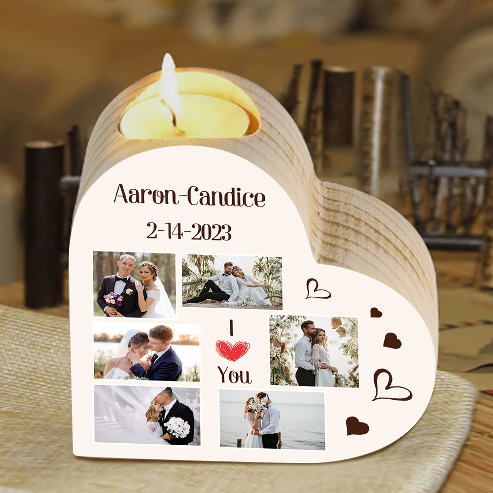 Personalized Love Couple Heart Candle Holder Engrave Photo Wooden Candlesticks Valentines Gift