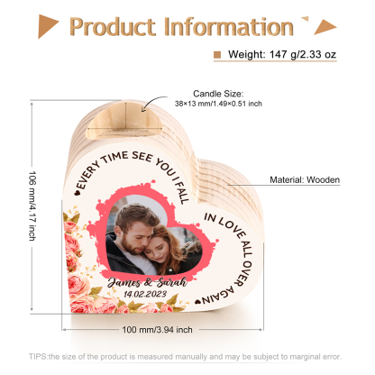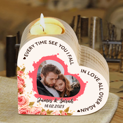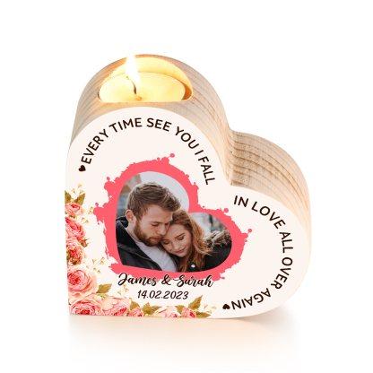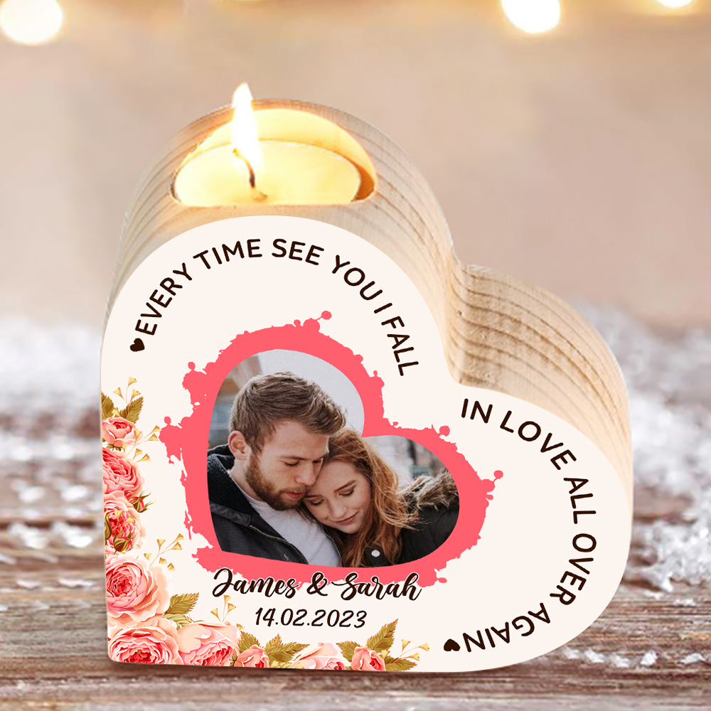 Personalized Love Couple Heart Candle Holder Engrave Photo Wooden Candlesticks Valentines Gift