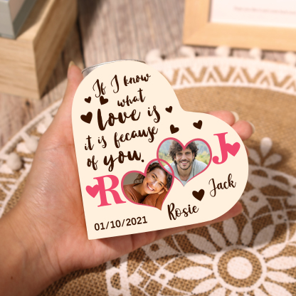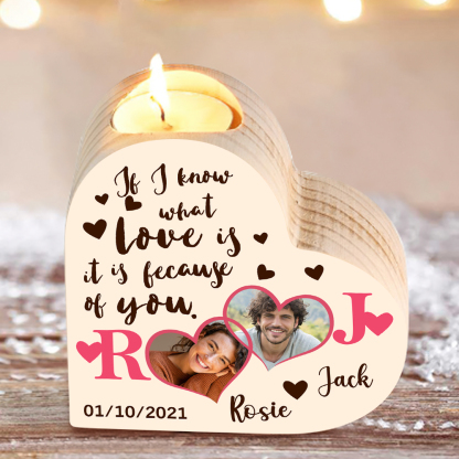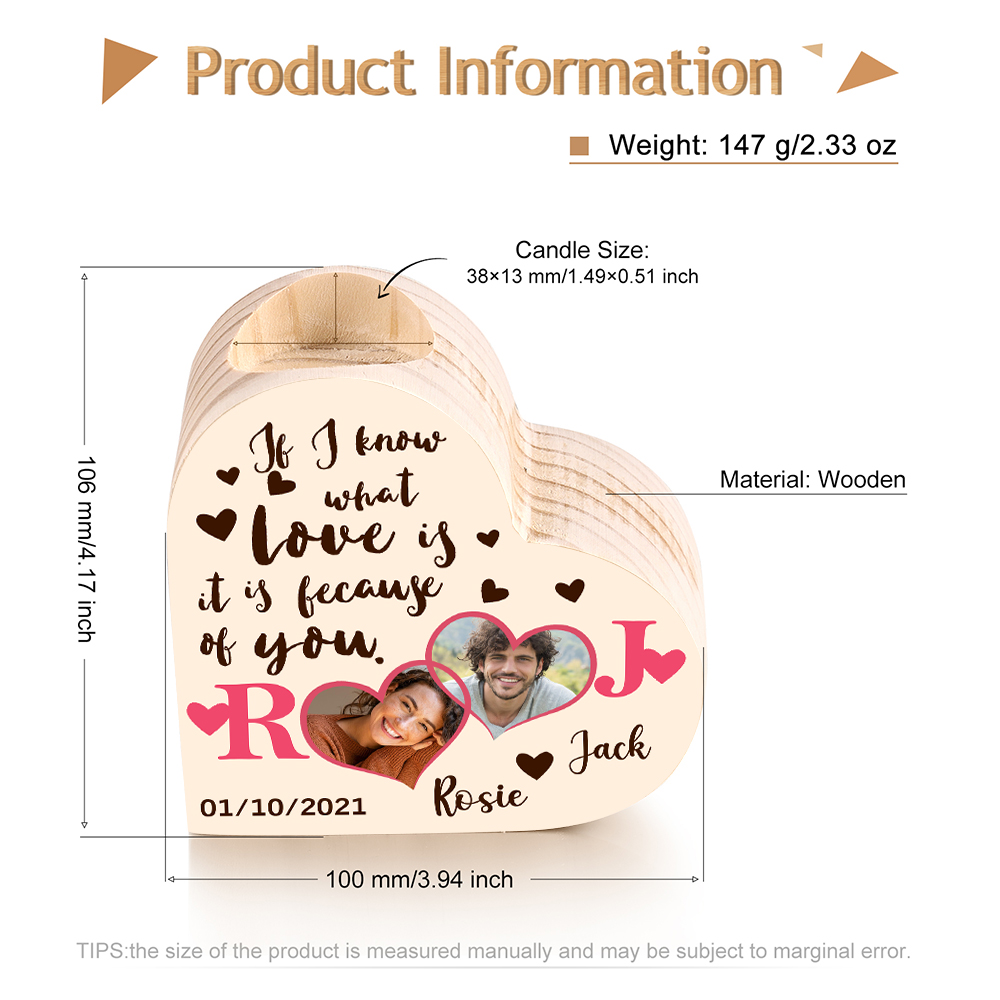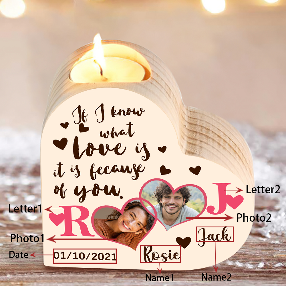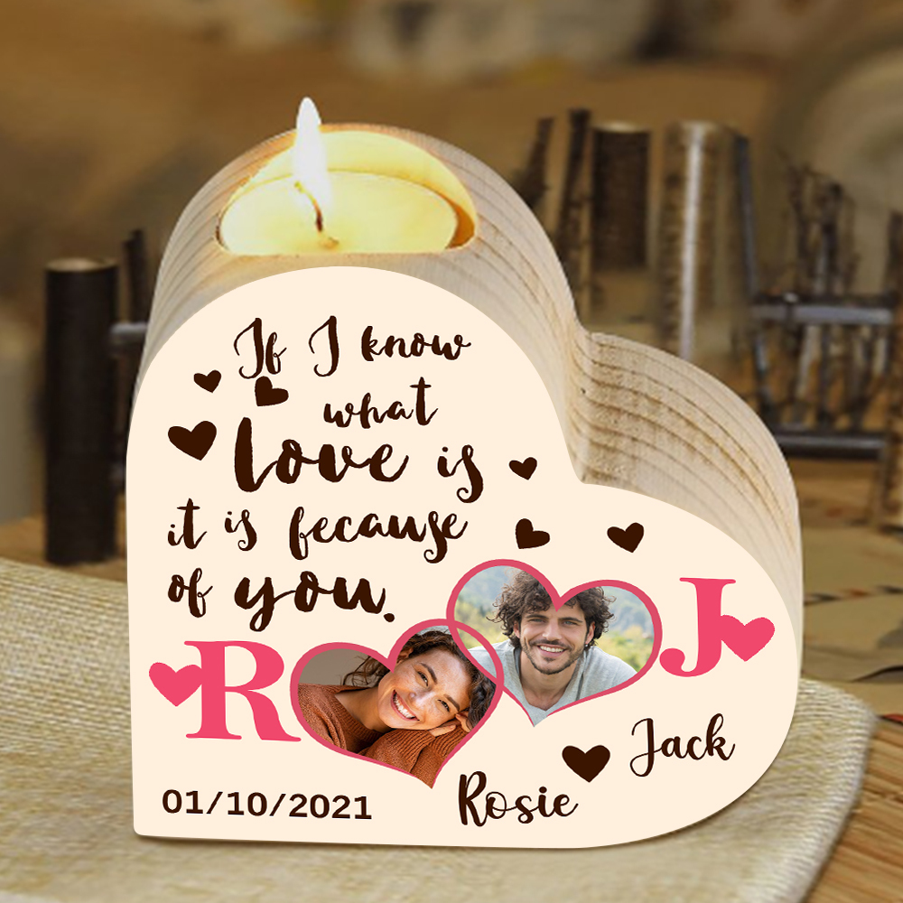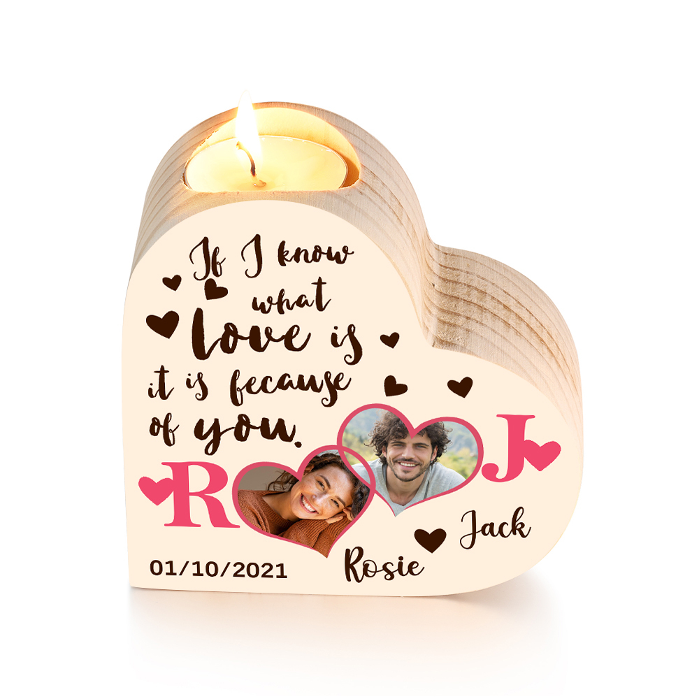Personalized Love Couple Heart Candle Holder Engrave Photo Wooden Candlesticks Valentines Gift