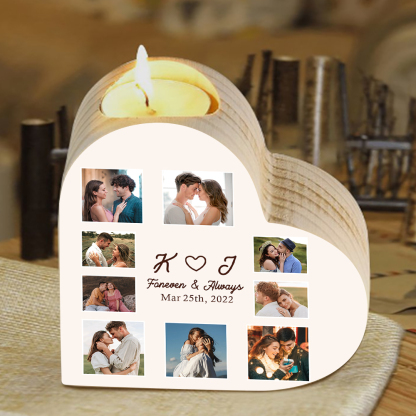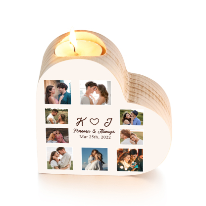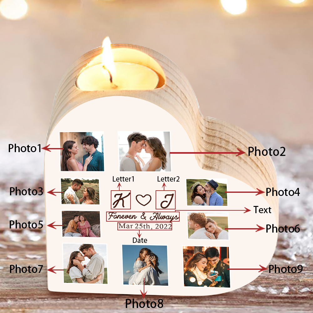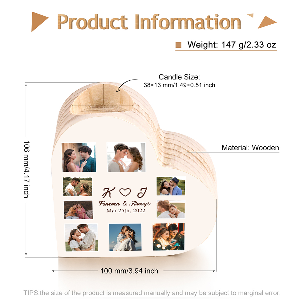 Personalized Love Couple Heart Candle Holder Engrave Photo Wooden Candlesticks Valentines Gift