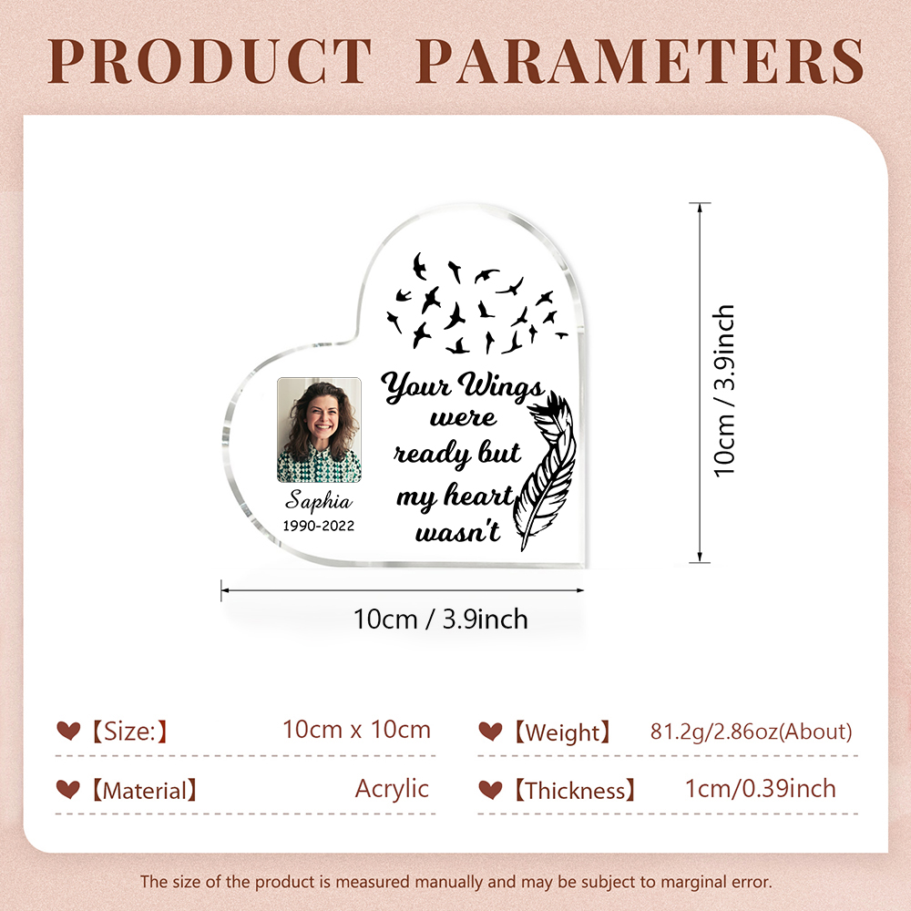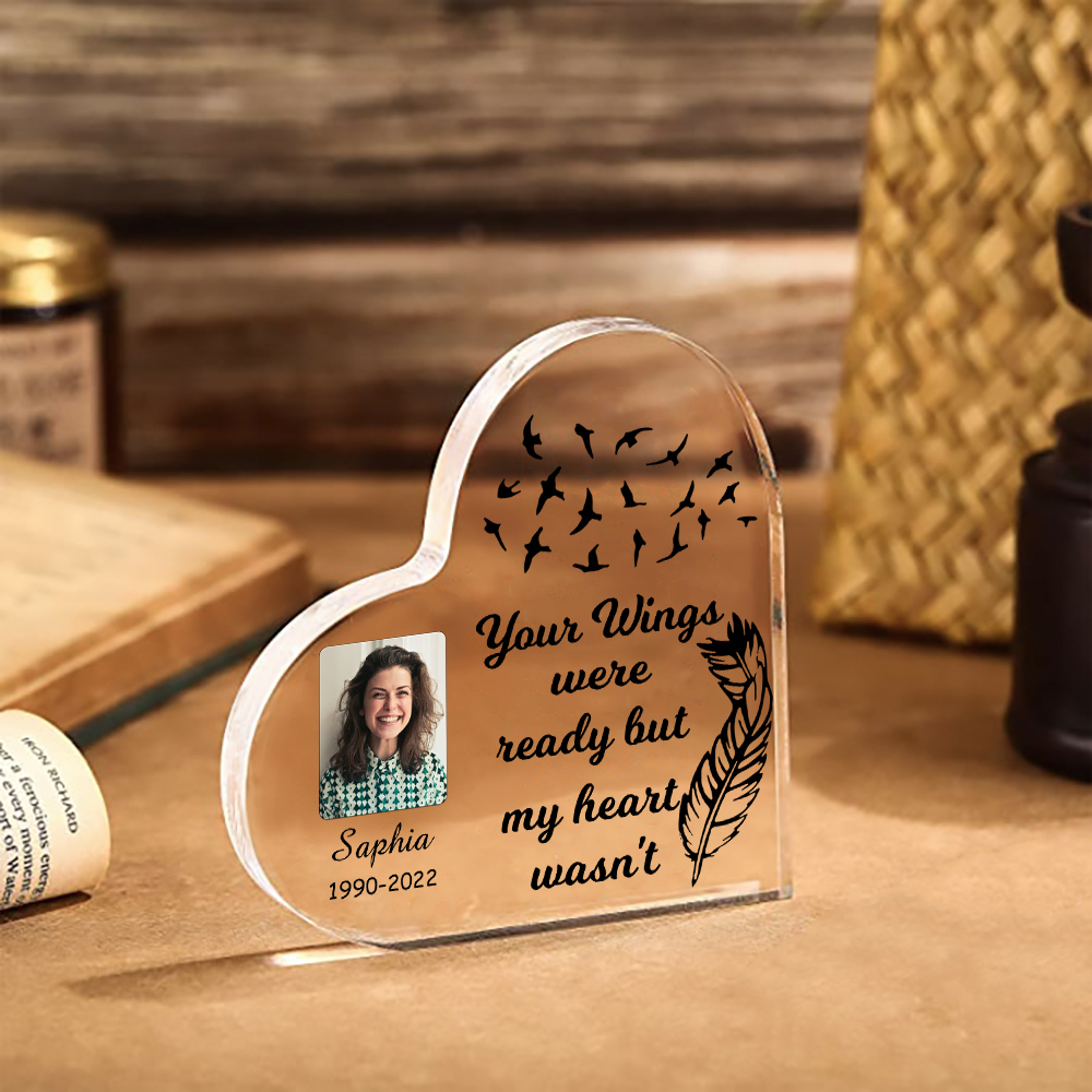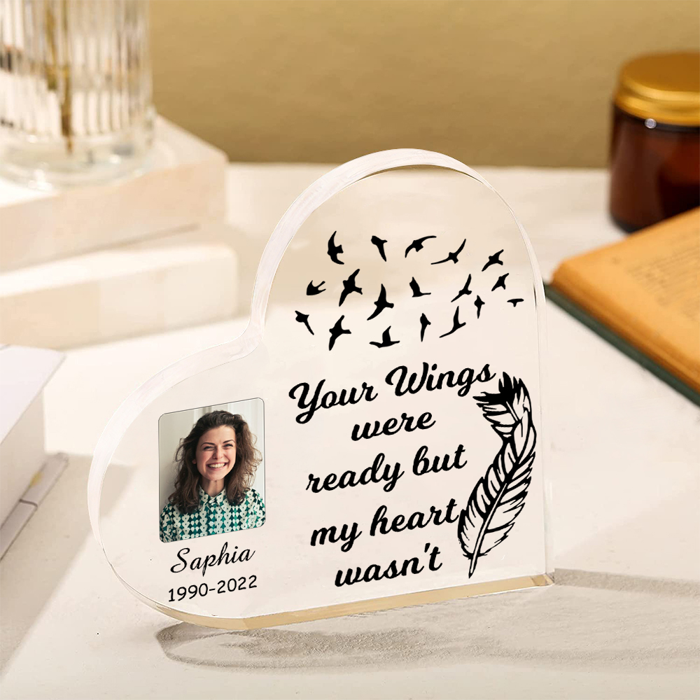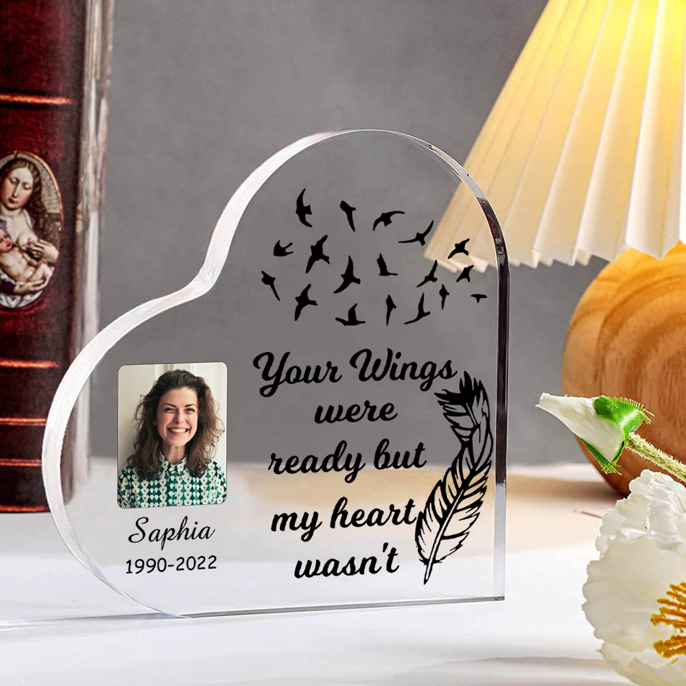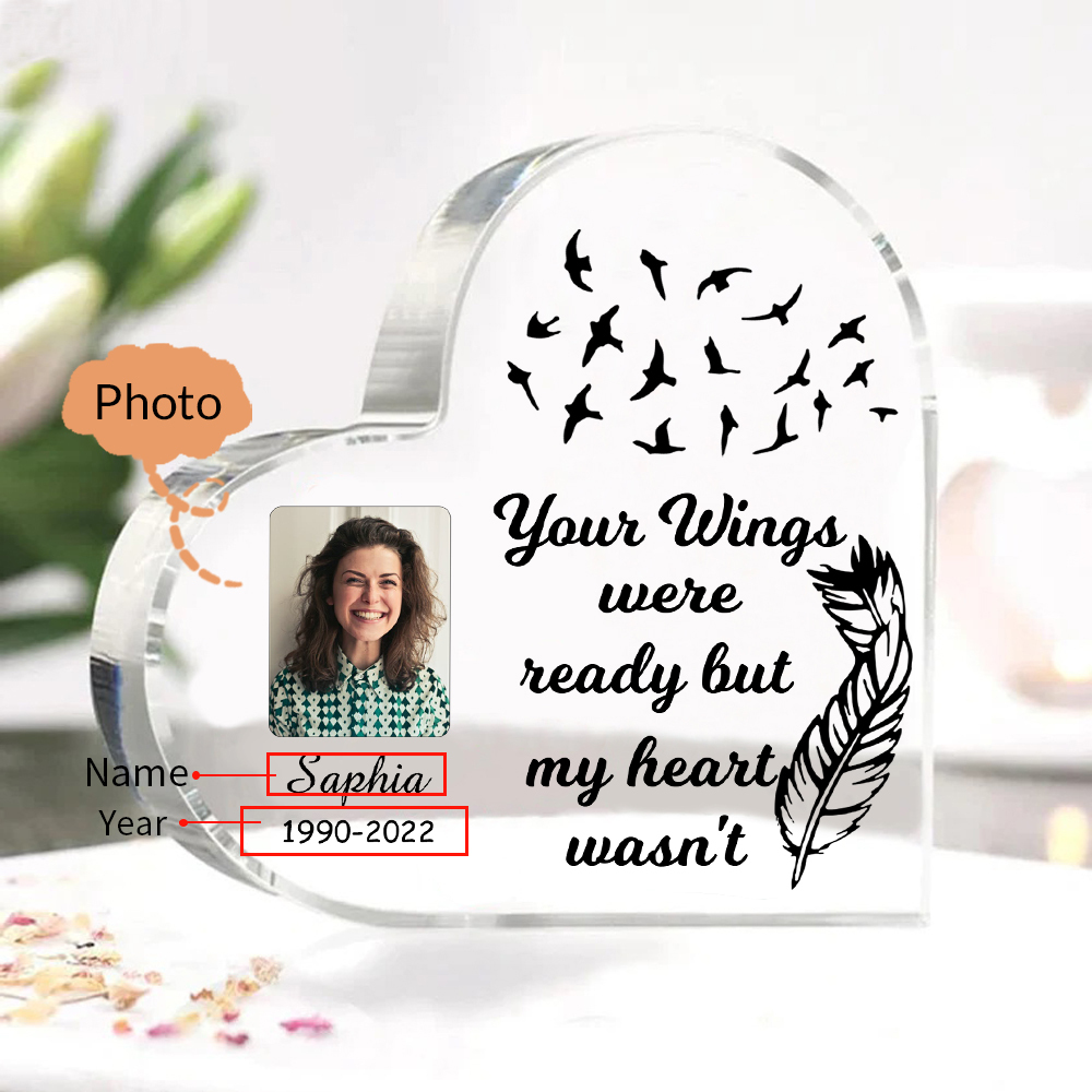 Personalized Memorial Acrylic Heart Keepsake Desktop Photo Ornament-Your Wings Were Ready But My Heart Wasn't