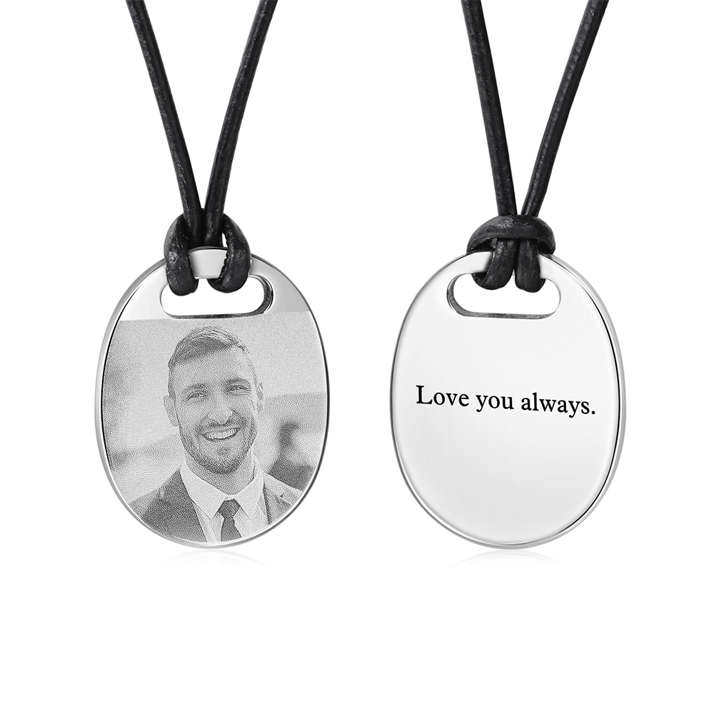 Personalized Custom Photo and Text Stainless Steel Men's Necklace Father's Day Gift for Dad