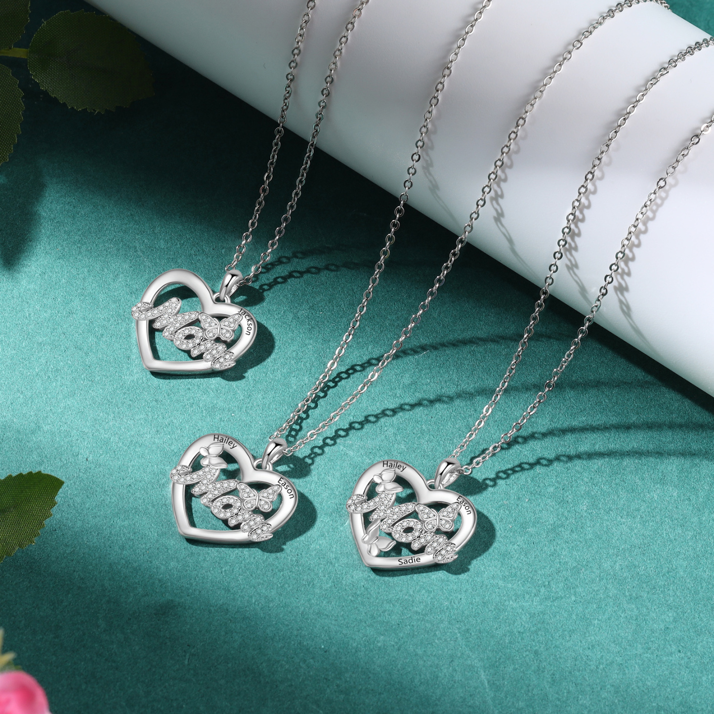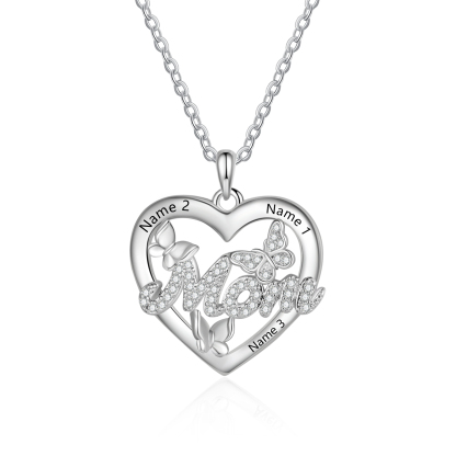 Personalized Mom Butterfly Heart Necklace with 1-3 Names