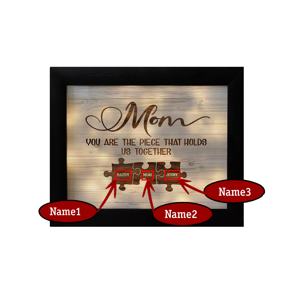 Personalized Mom Puzzle Picture Frame With Light Custom 3 Names Decor Gifts For Mother - You are the piece that holds us together