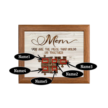 Personalized Mom Puzzle Picture Frame With Light Custom 5 Names Decor Gifts For Mother - You are the piece that holds us together