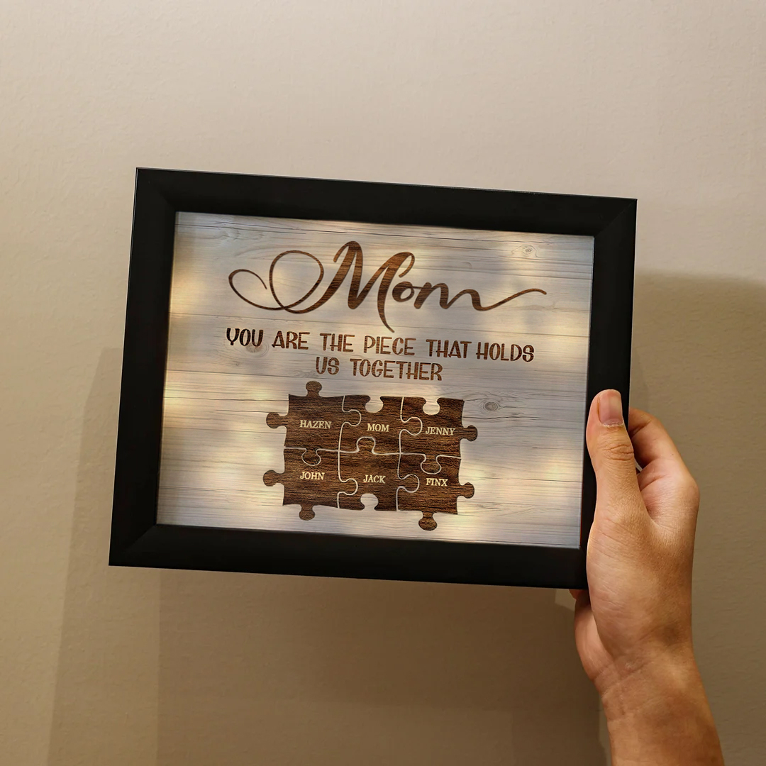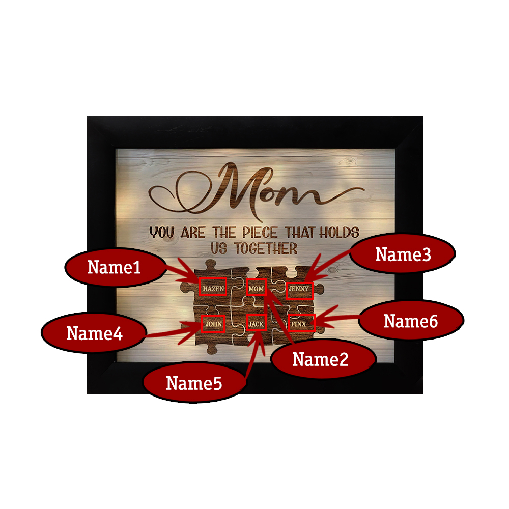 Personalized Mom Puzzle Picture Frame With Light Custom 6 Names Decor Gifts For Mother - You are the piece that holds us together