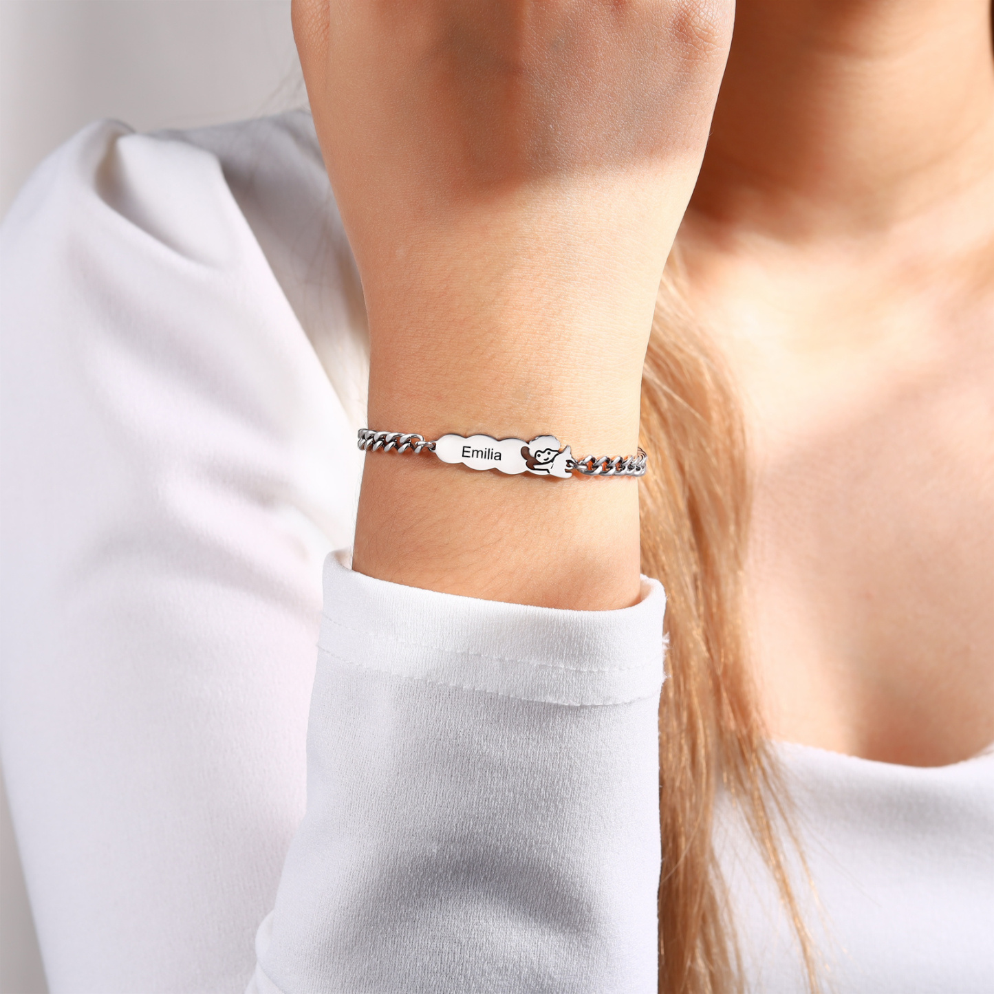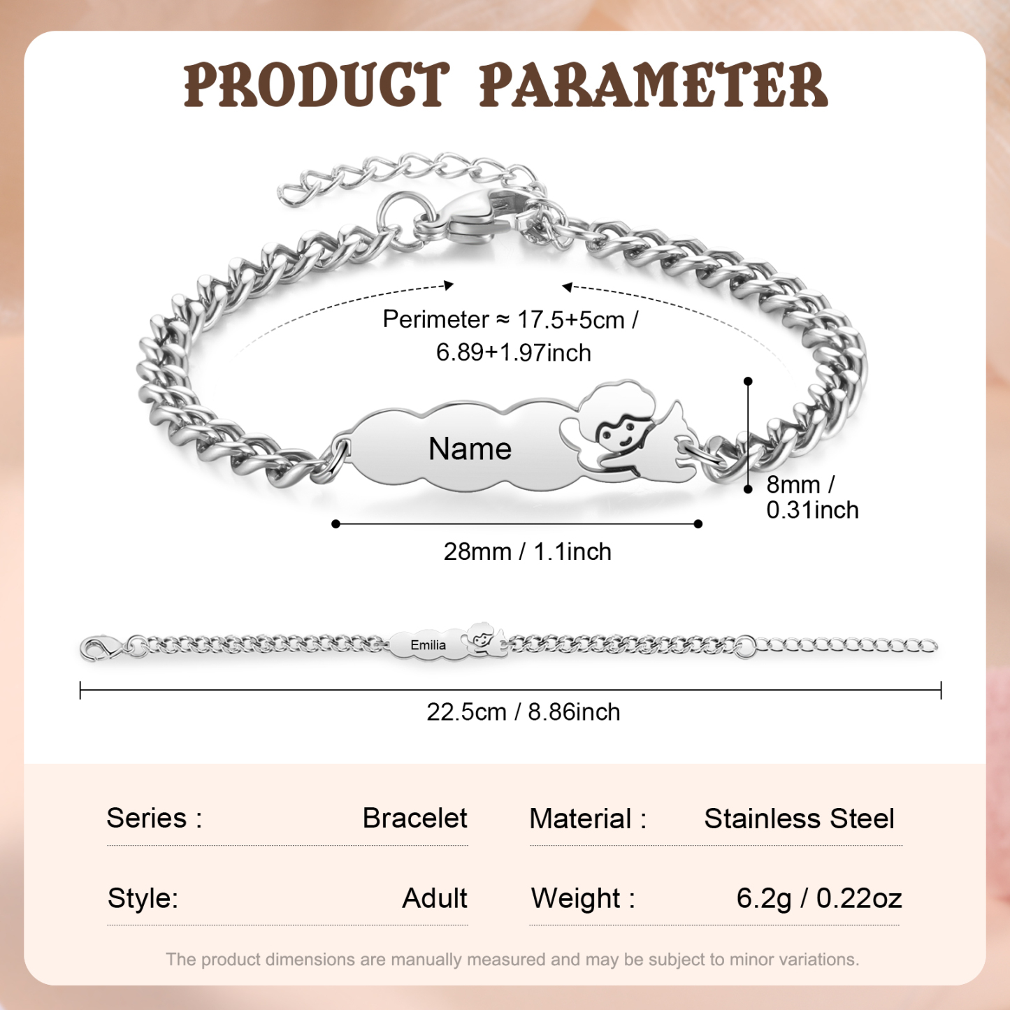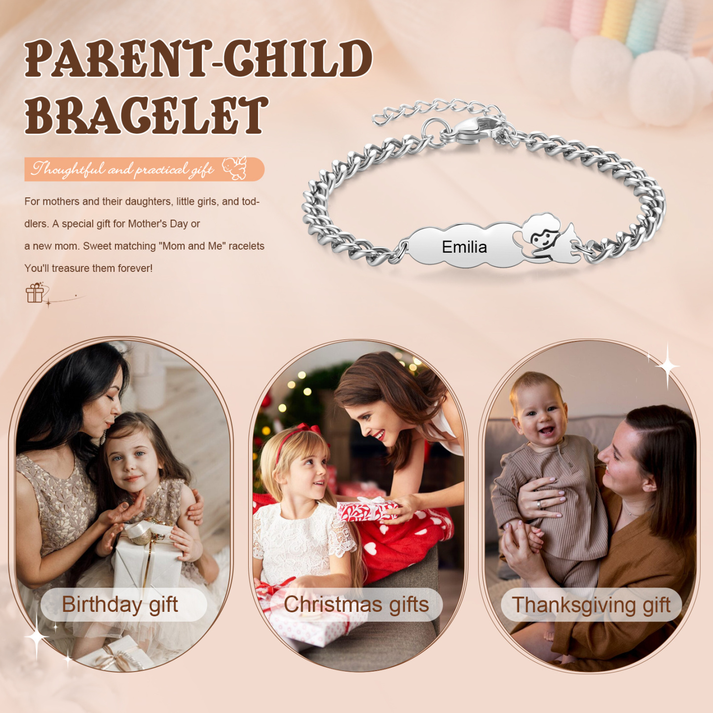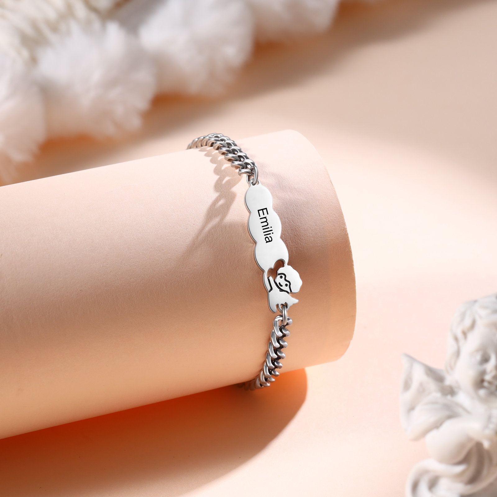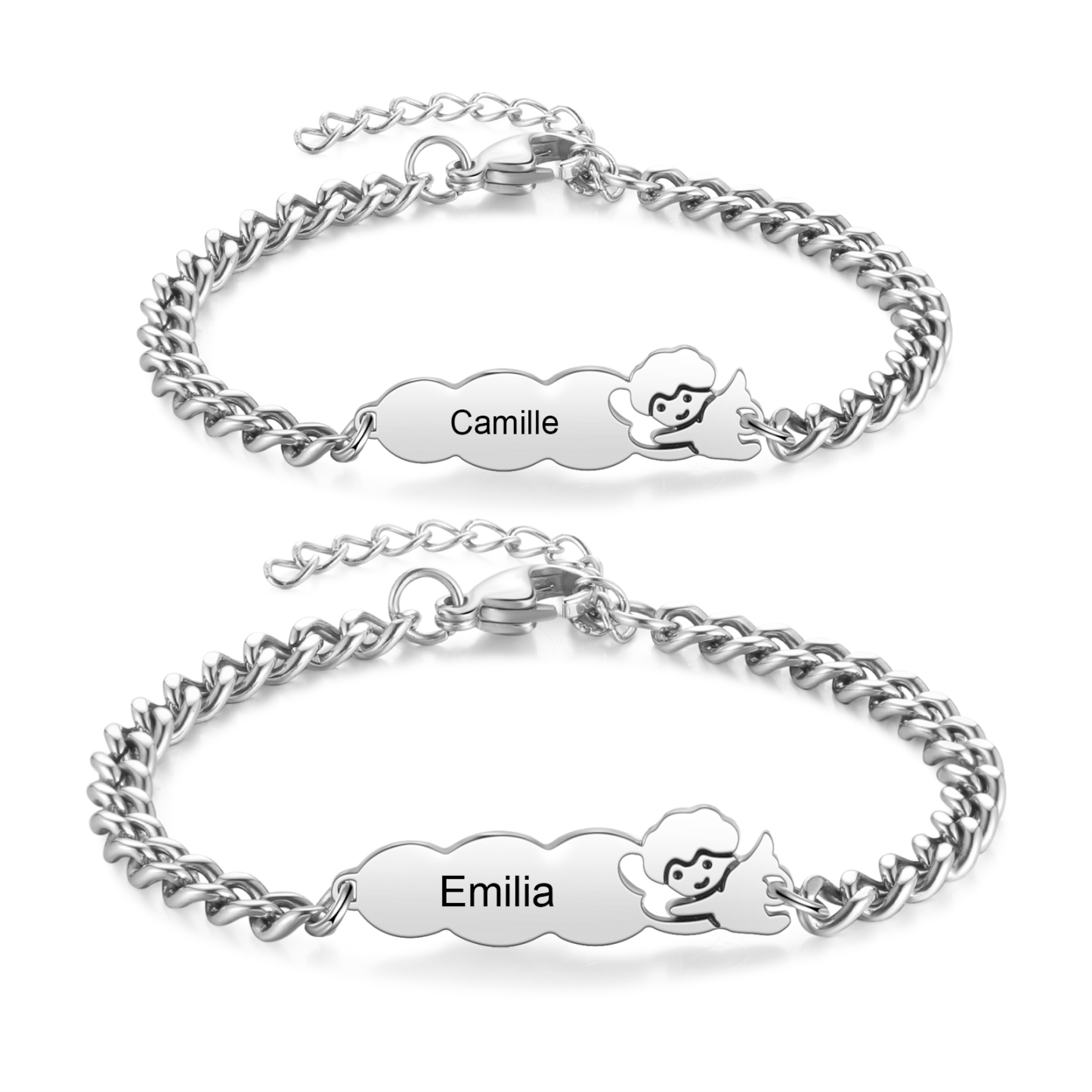 Keywords: personalized bracelet, custom name bracelet, guardian angel bracelet, gift for child, gift for mom, matching family bracelet, stainless steel jewelry, meaningful everyday keepsake