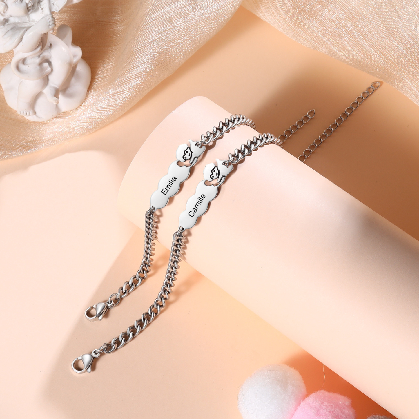 Personalized Mother & Daughter Angel Cloud Stainless Steel Bracelet