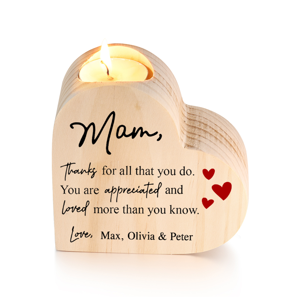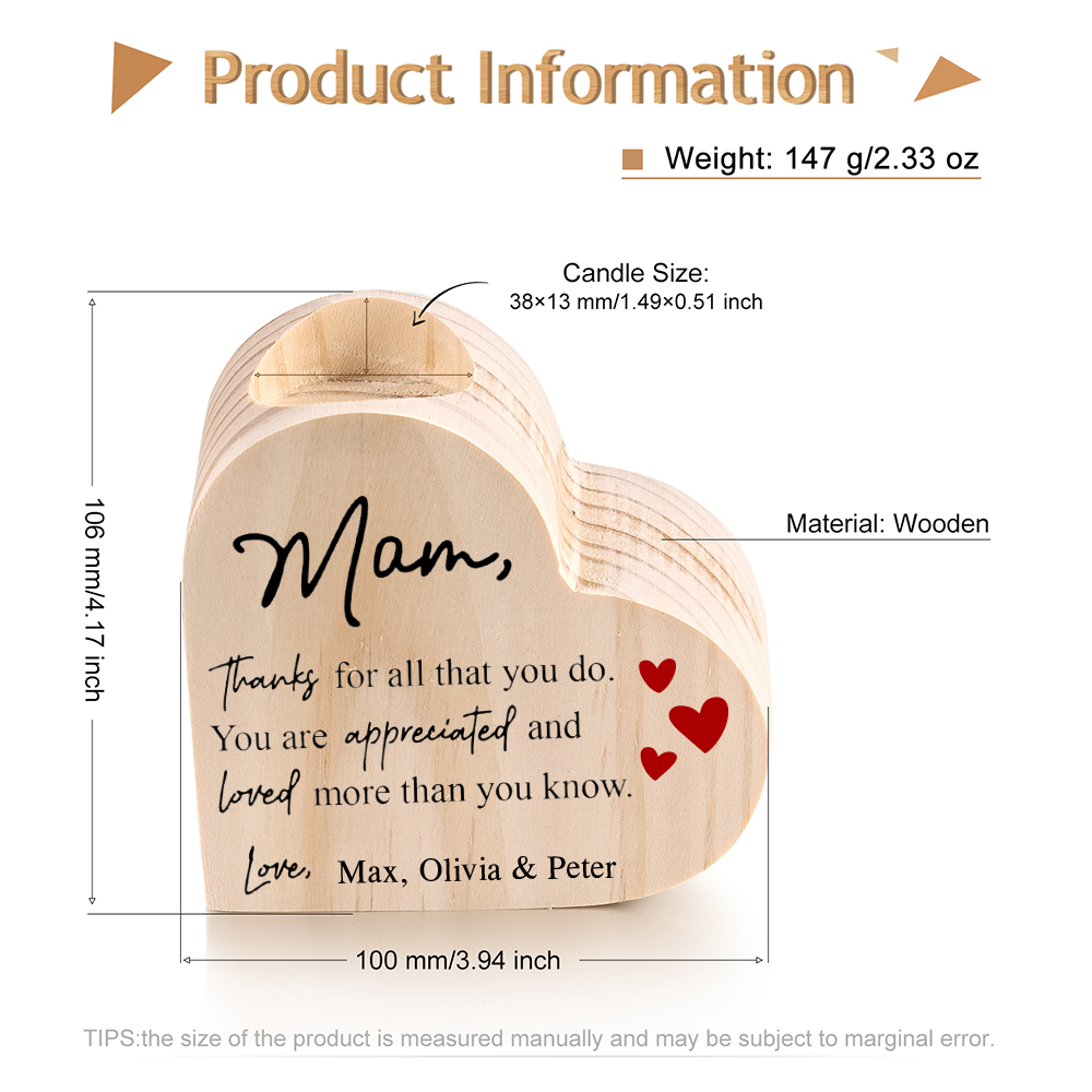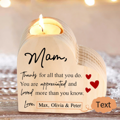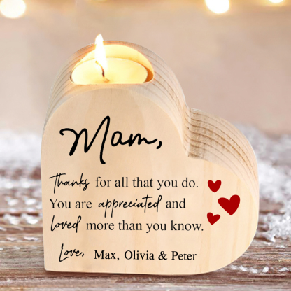 Personalized Mother Heart Candle Holder Wooden Candlestick-Mom Thanks for All That You Do