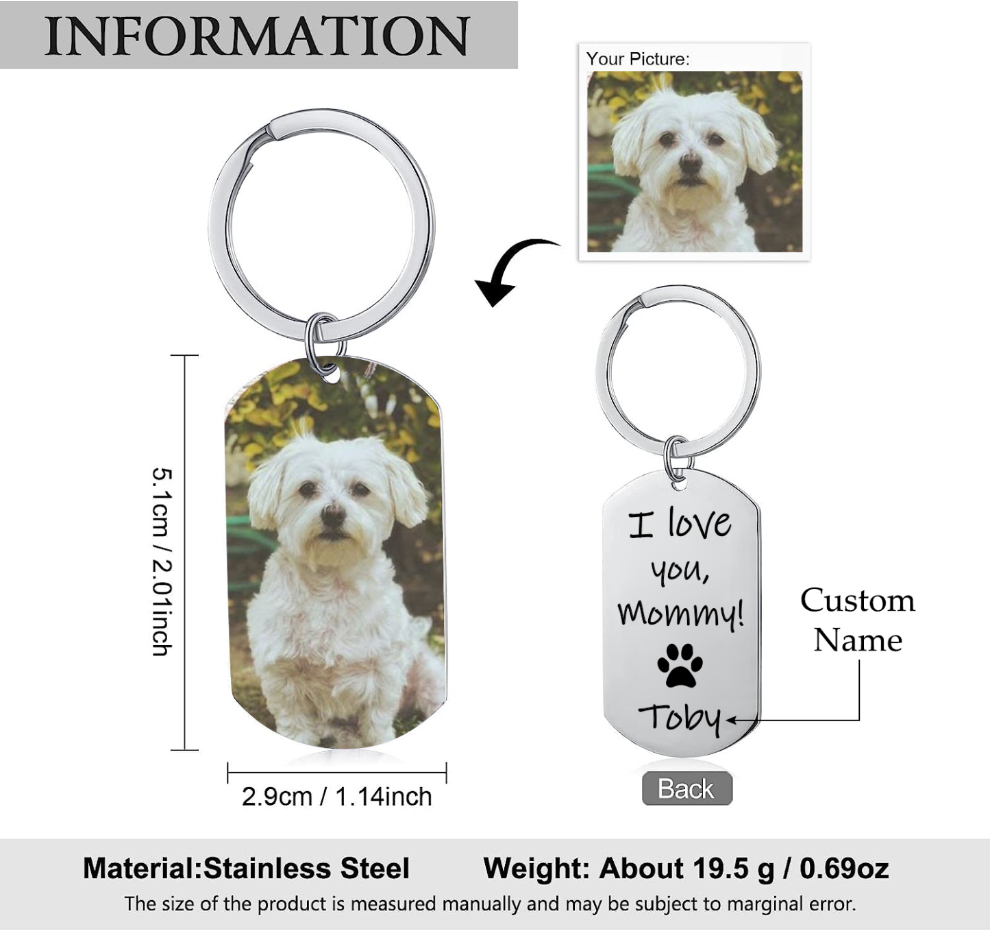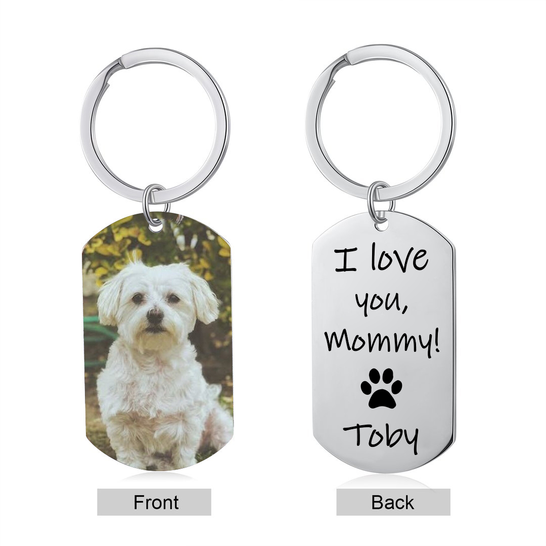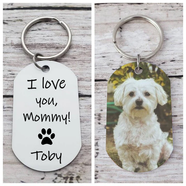 Personalized Mother Photo Keychain I Love You Mommy Dog Tag Keyring