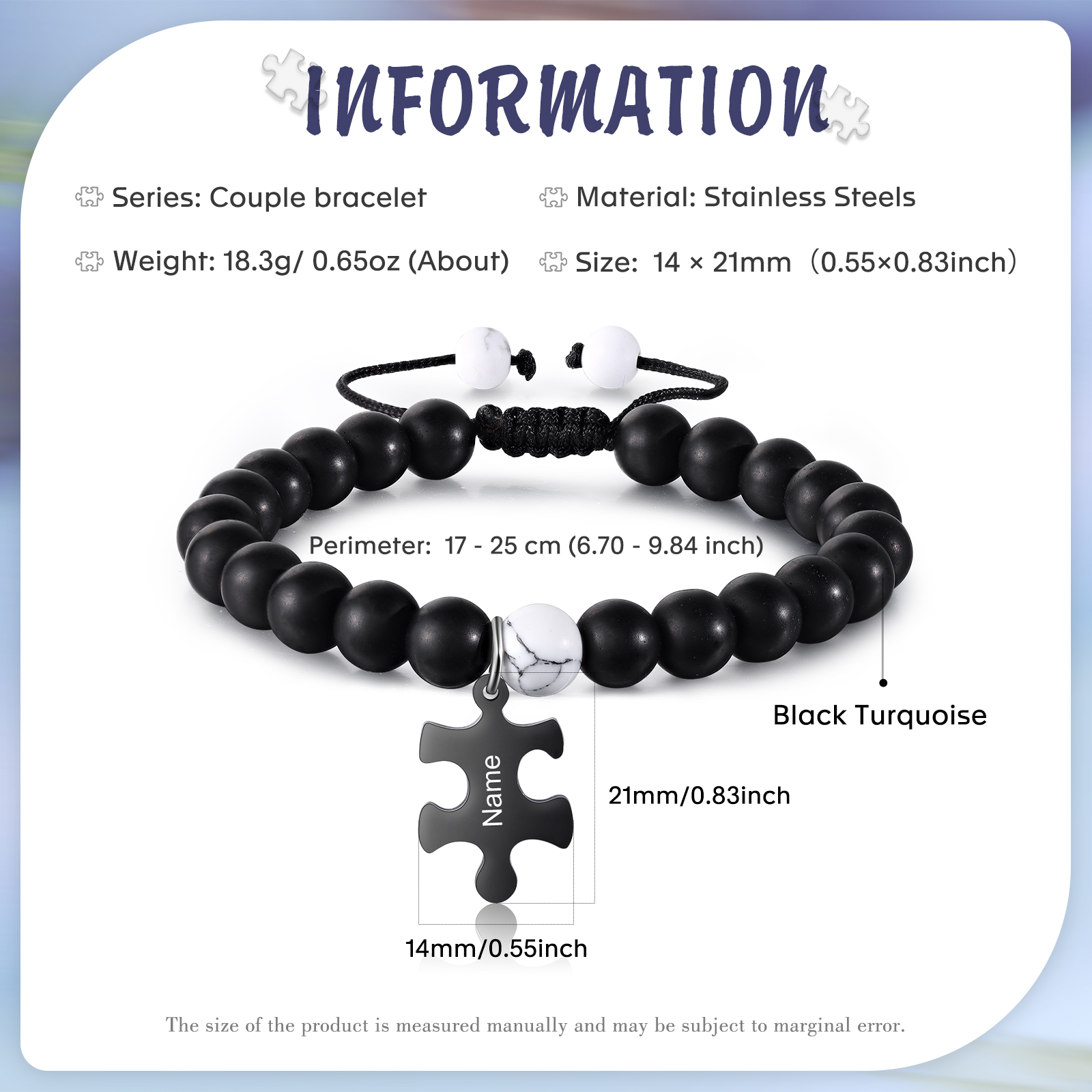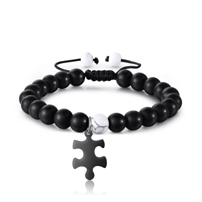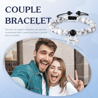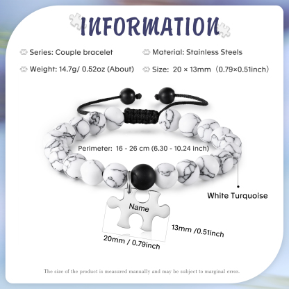 Personalized Name Adjustable Bead Bracelet Custom Name Engraved Puzzle Pendant Bracelet Personalized Gift for Him/Her