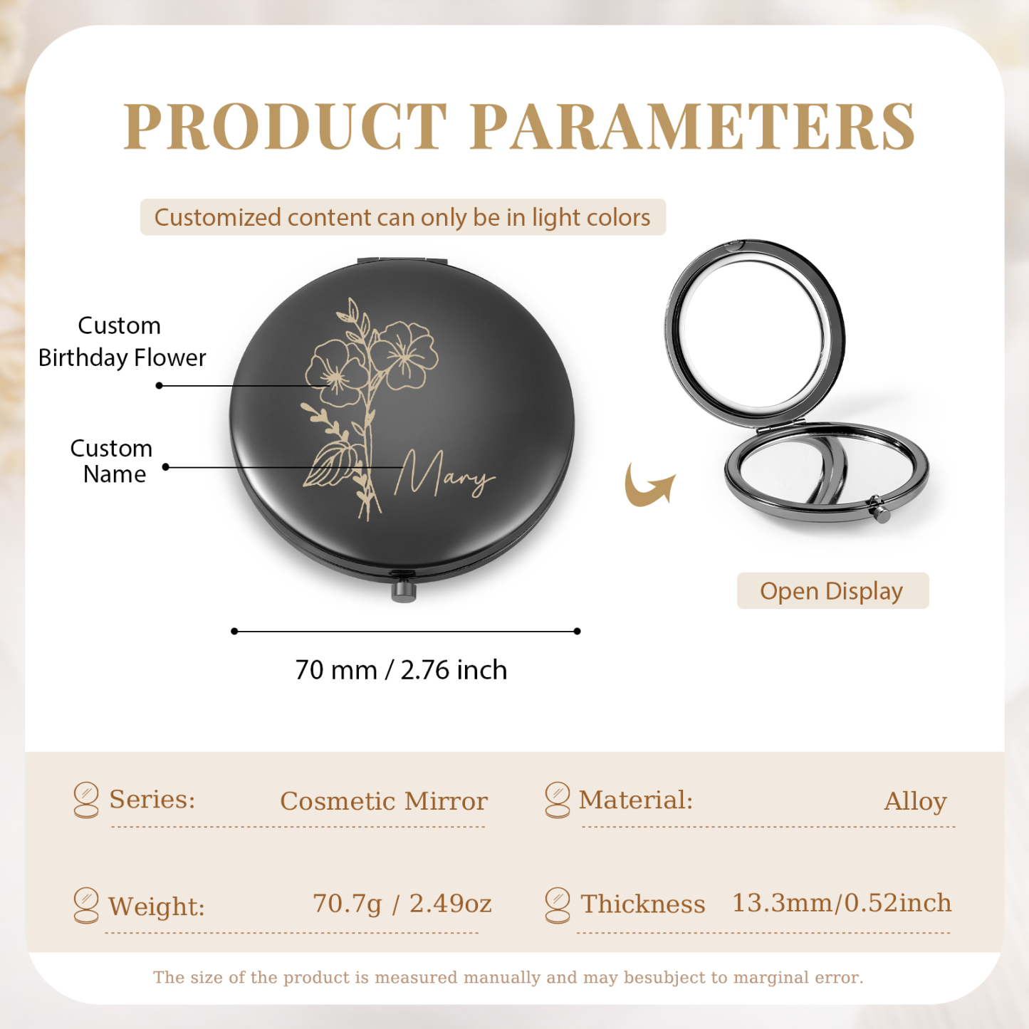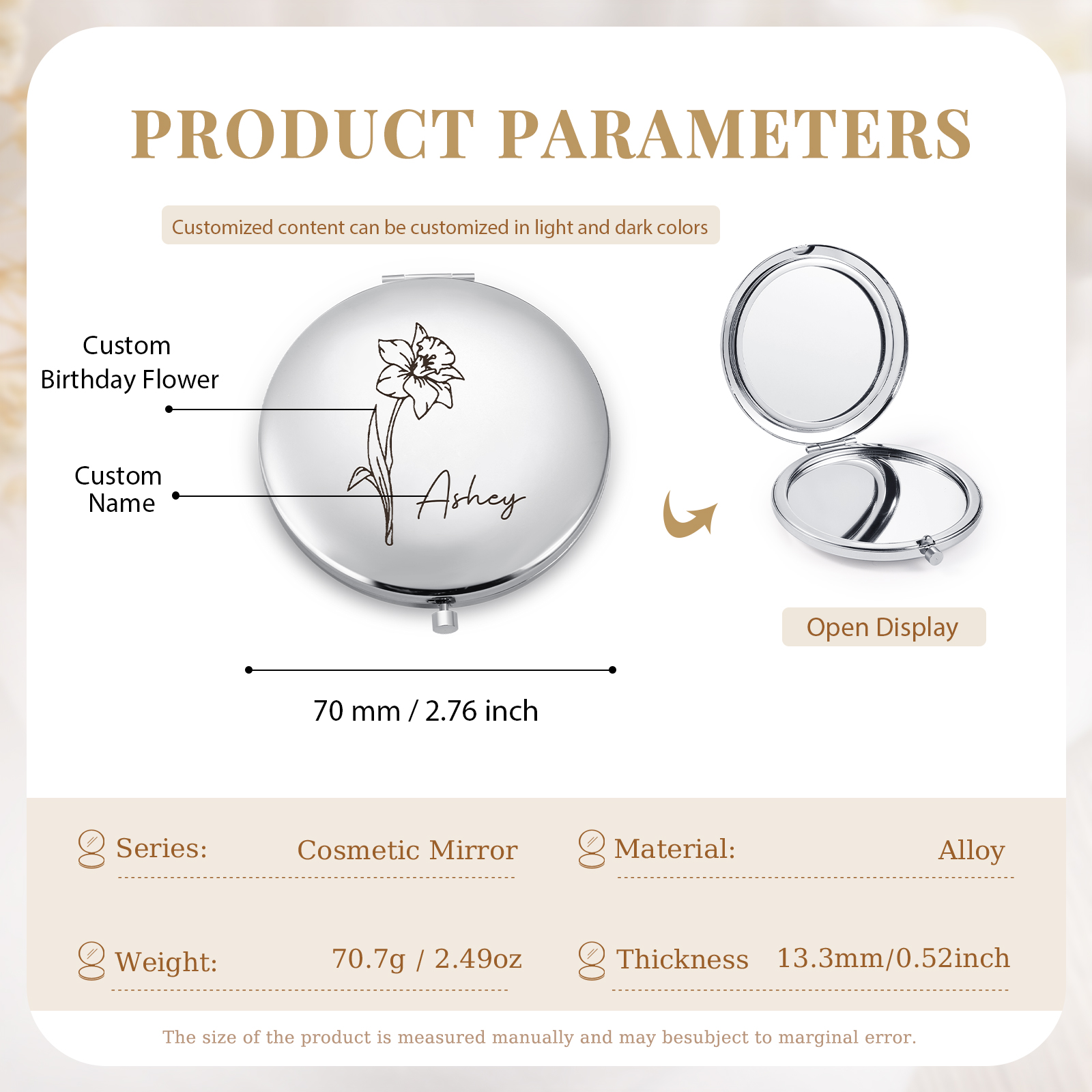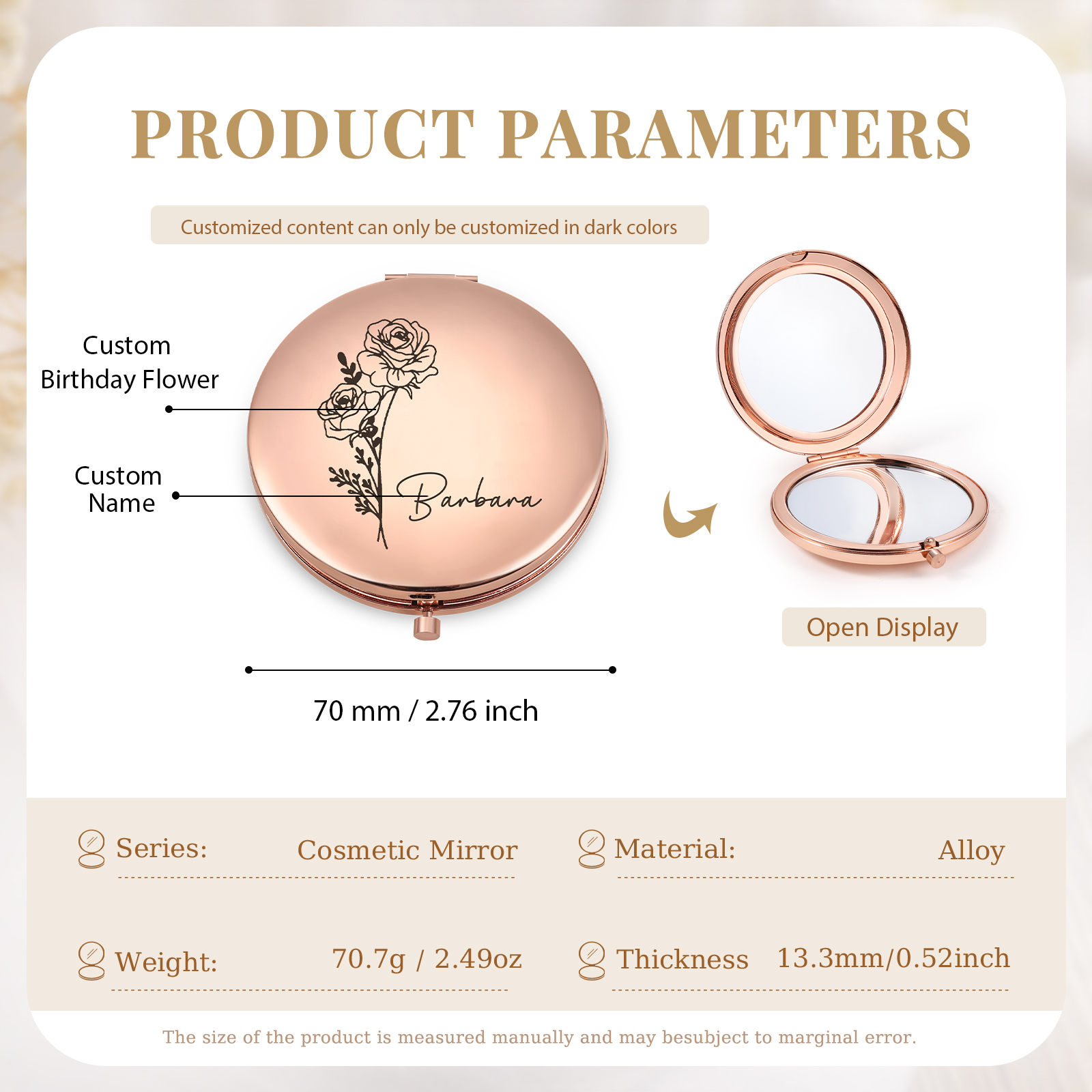 Personalized Name And Birth Flower Makeup Mirror Exquisite Small Gift For Her