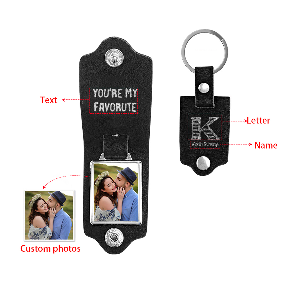Personalized Name And Letter Flip Leather Keychain Custom Photo Keychain Gifts For Him