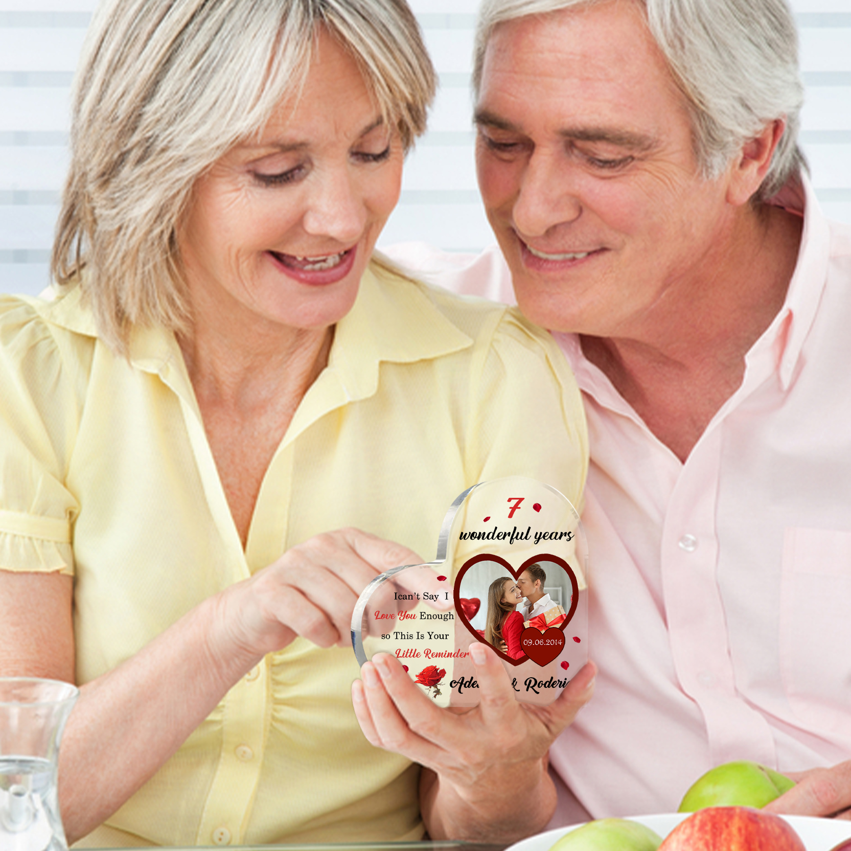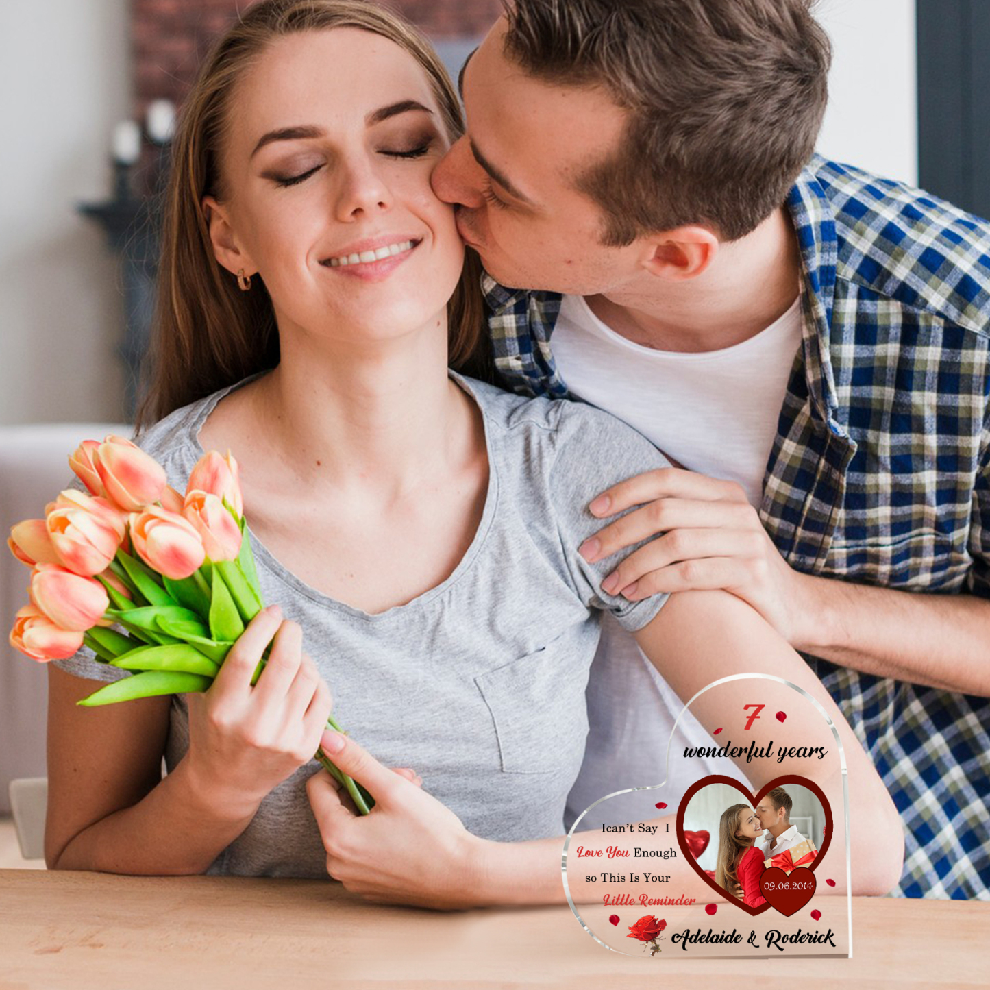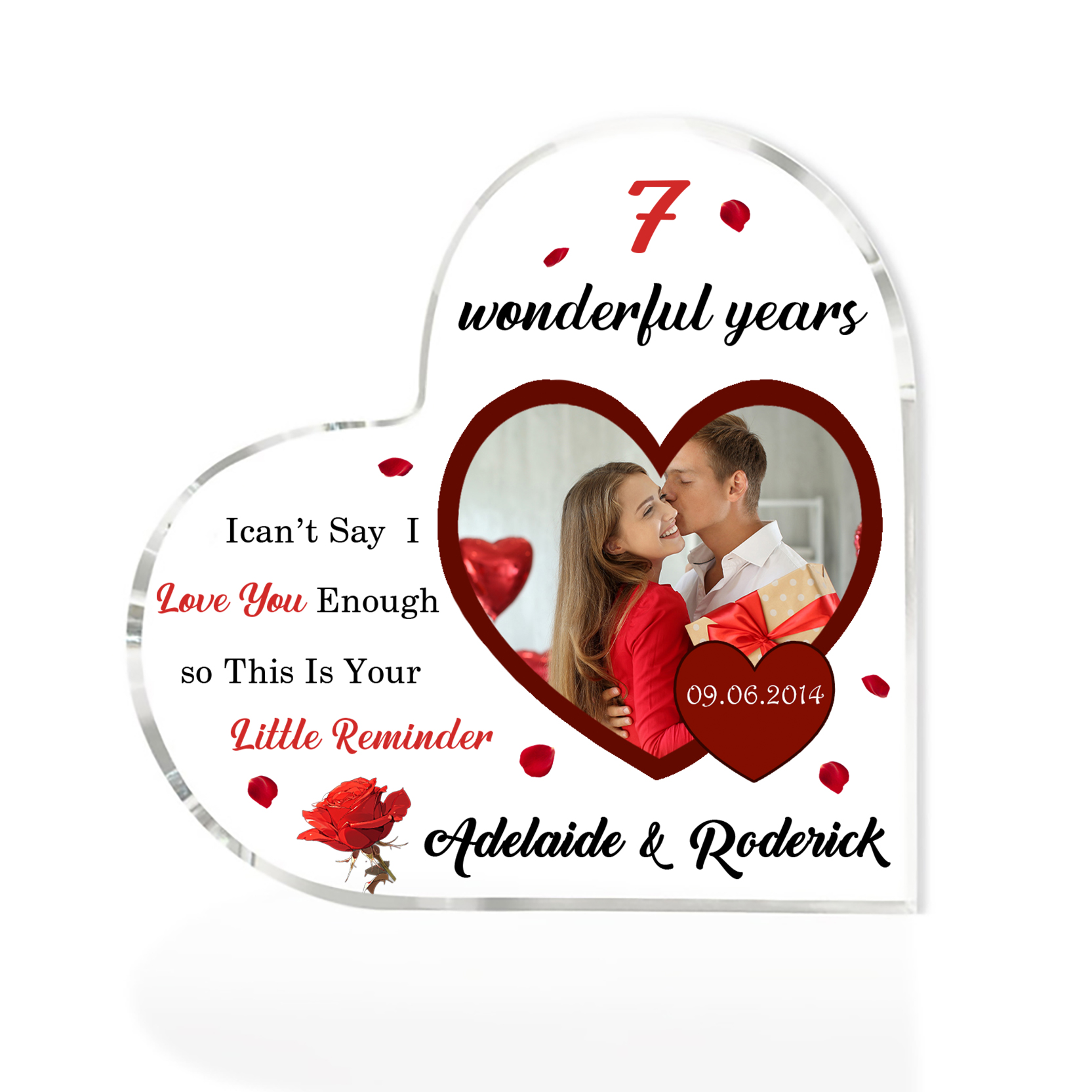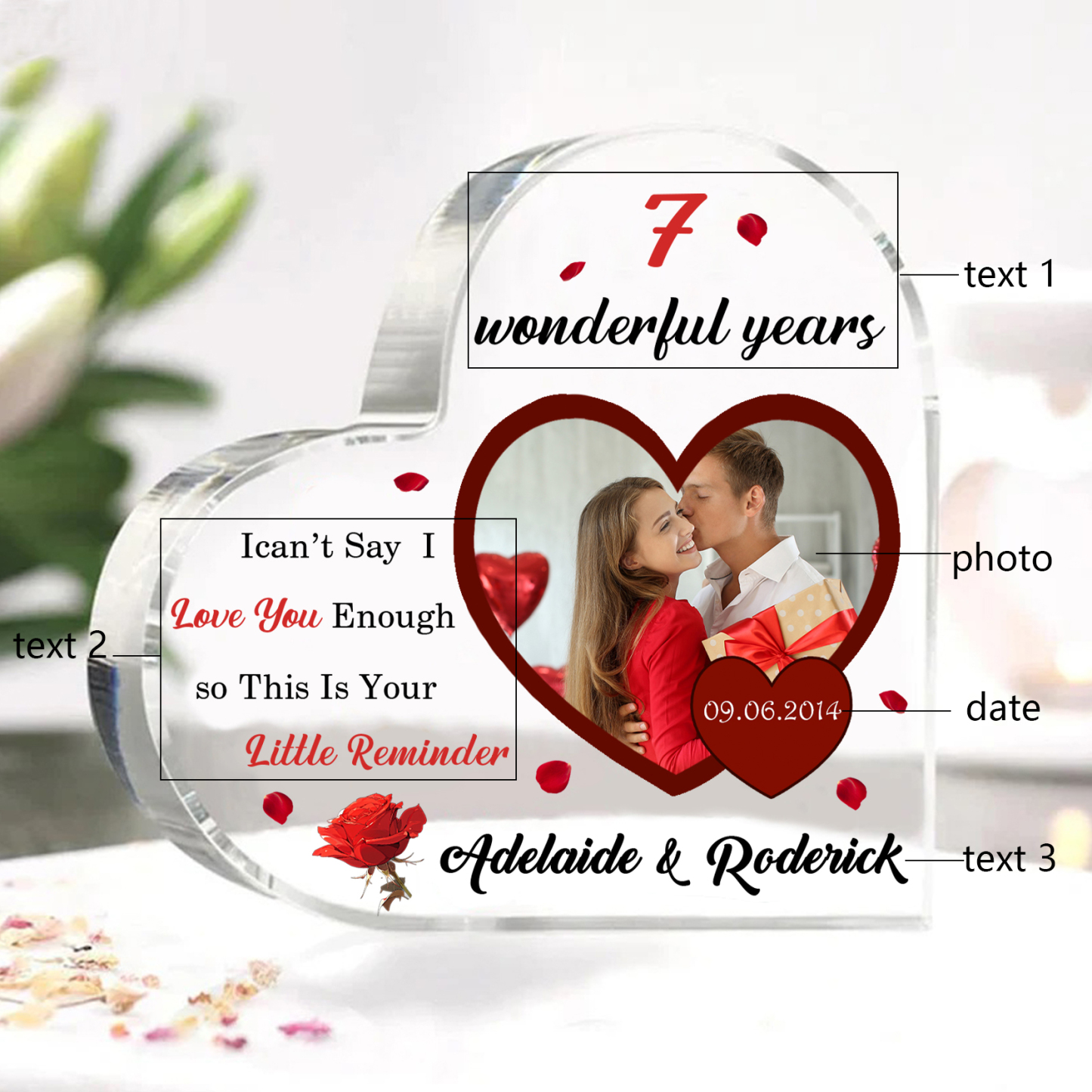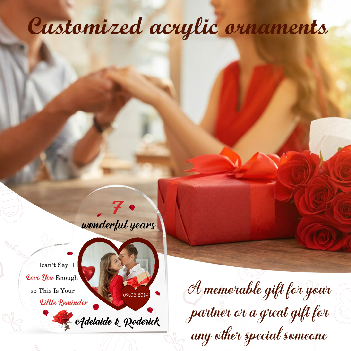 Personalized Name And Text Couple Acrylic Ornament Custom Photo Anniversary Acrylic Heart Keepsake Desktop Ornament for Couple