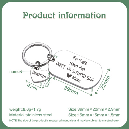 We all hope that our children will be healthy and not be confused. Give them this keychain to remind them in a funny way: Don't Do Stupid Shit.