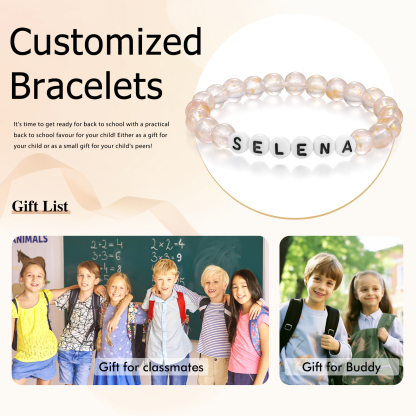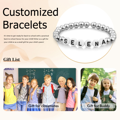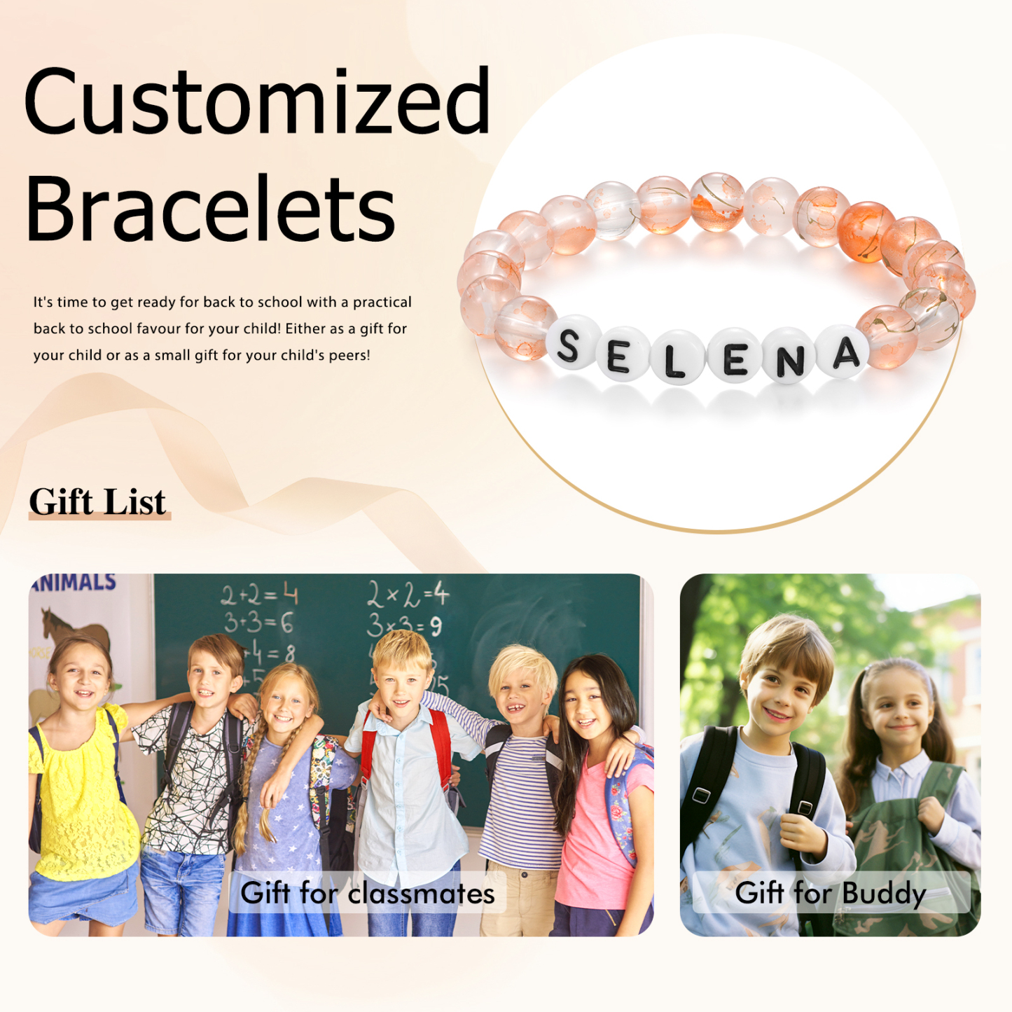 🎁 Want a personalized touch? Surprise your child with one of our custom, beautifully handmade bracelets featuring their name! 🌟 Carefully crafted and delightfully designed, this thoughtful gift adds a special touch to any back-to-school occasion. Let their wrist sparkle with a unique piece made just for them! 💖