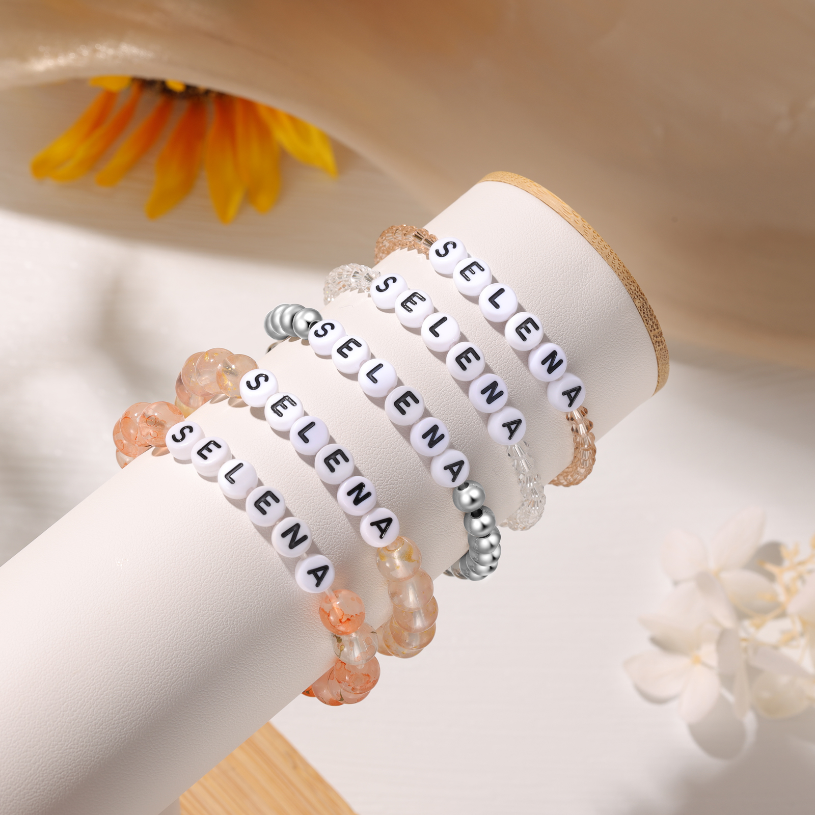 Personalized Name Colored Glass Beaded Bracelet With Many Options For Back To School Gift For Daughter
