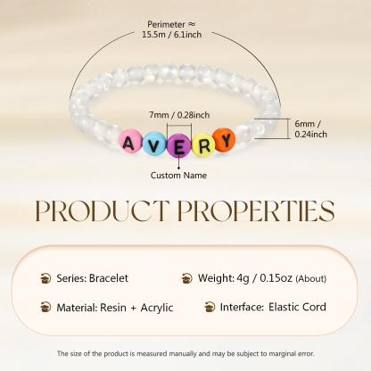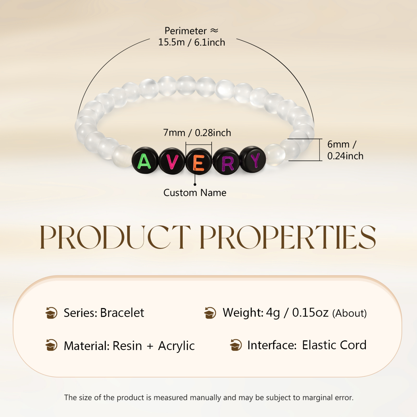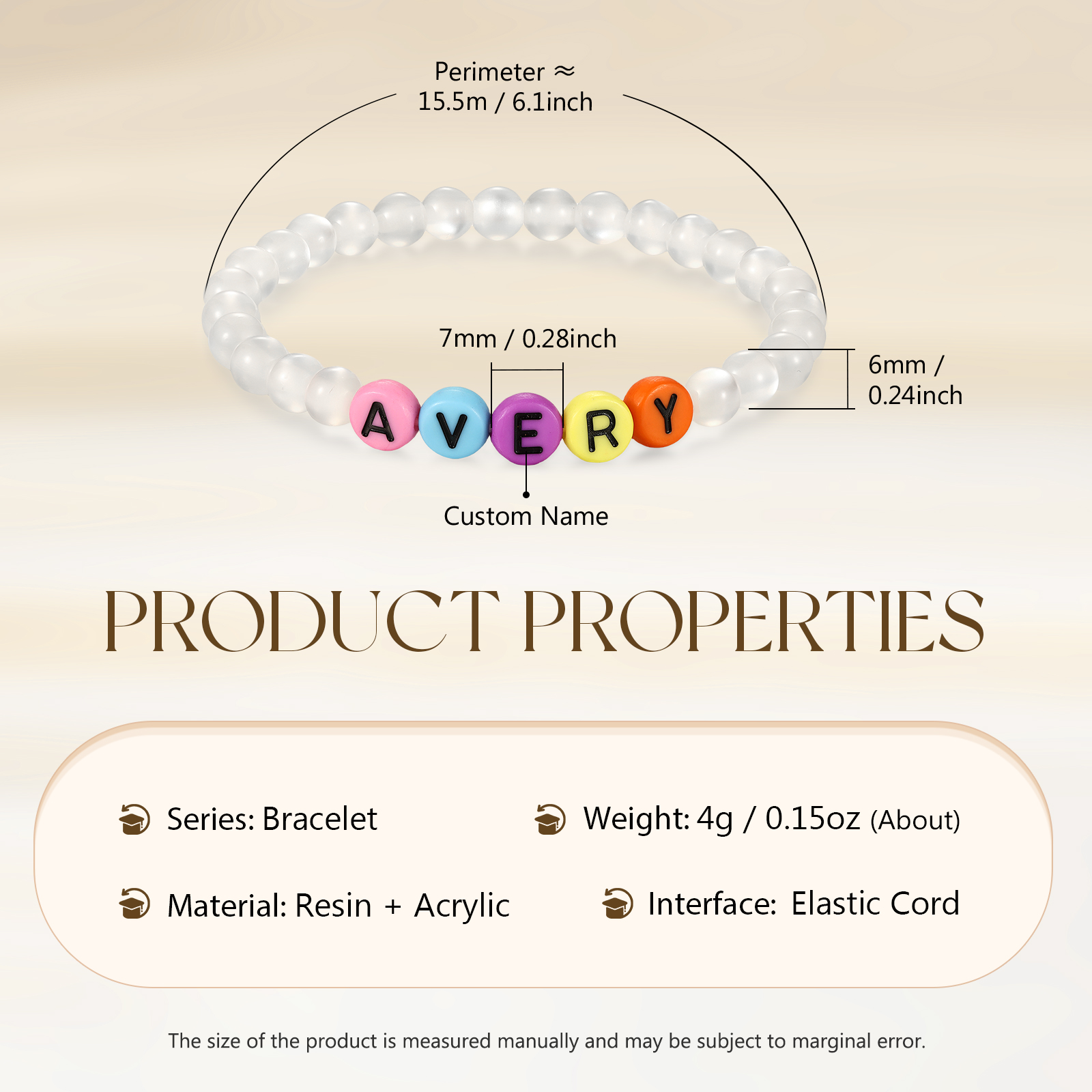 Personalized Name Colored Resin Beaded Bracelet With Many Options For Back To School Gift For Daughter