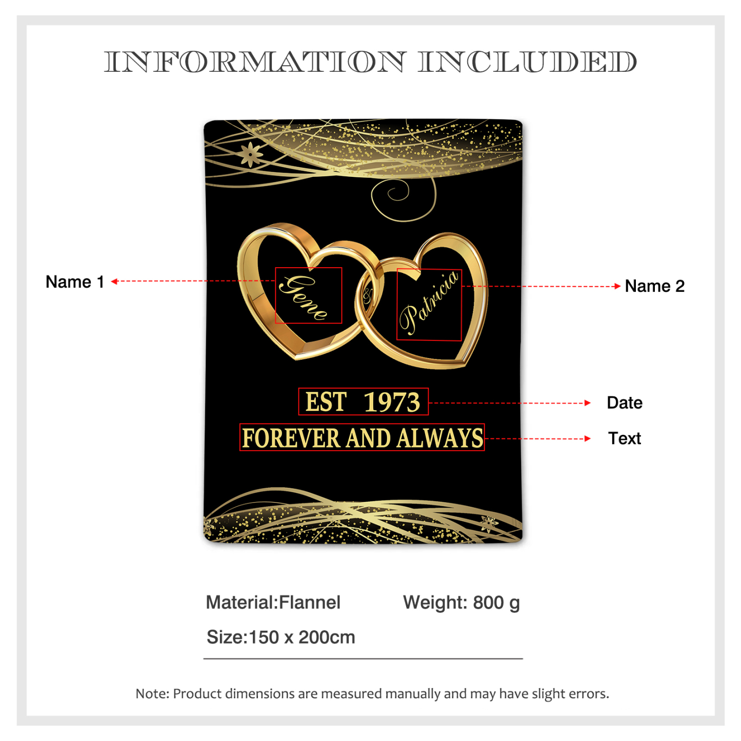 Personalized Name Couple Heart Blanket Custom Date And Text Sweet Gift For Valentine's Day